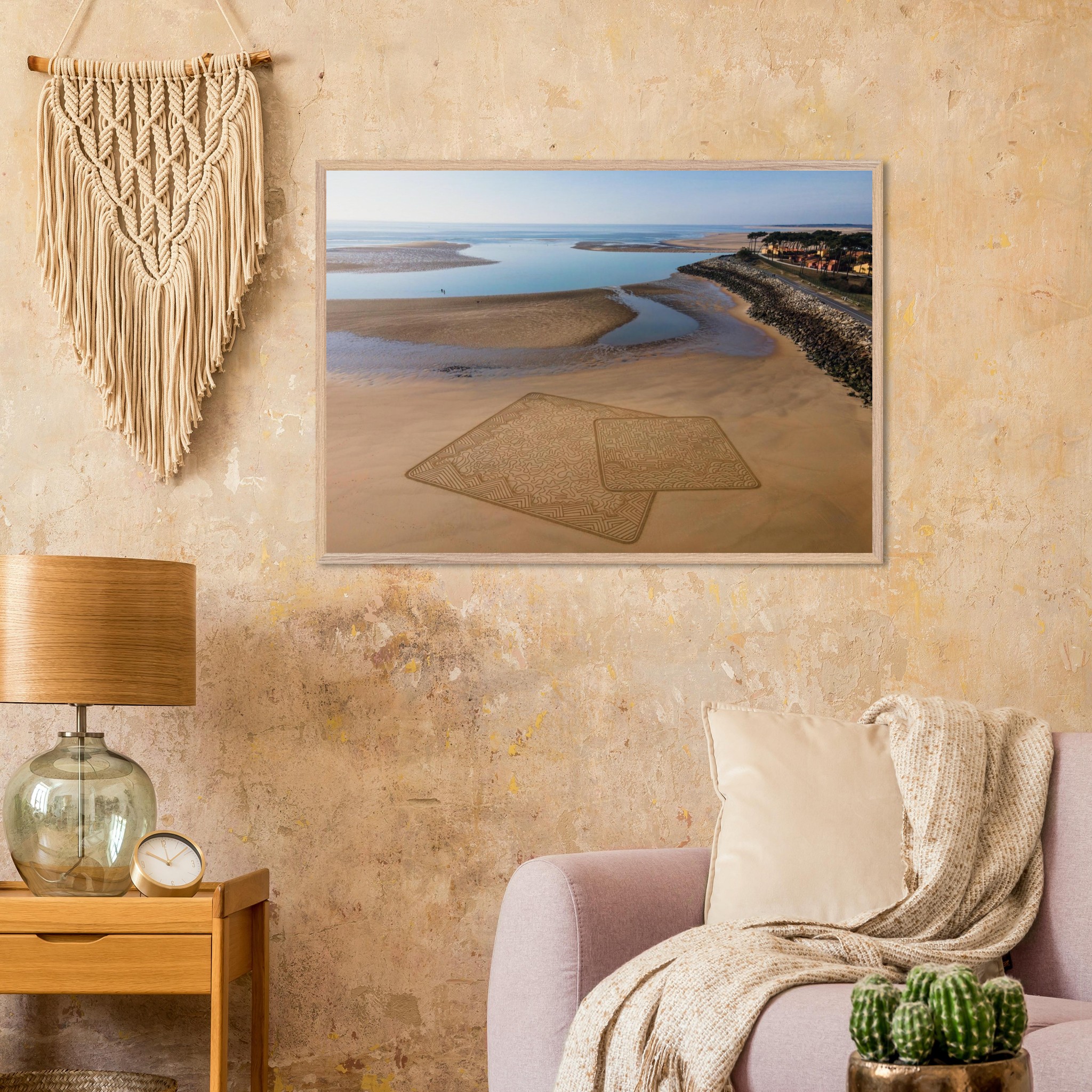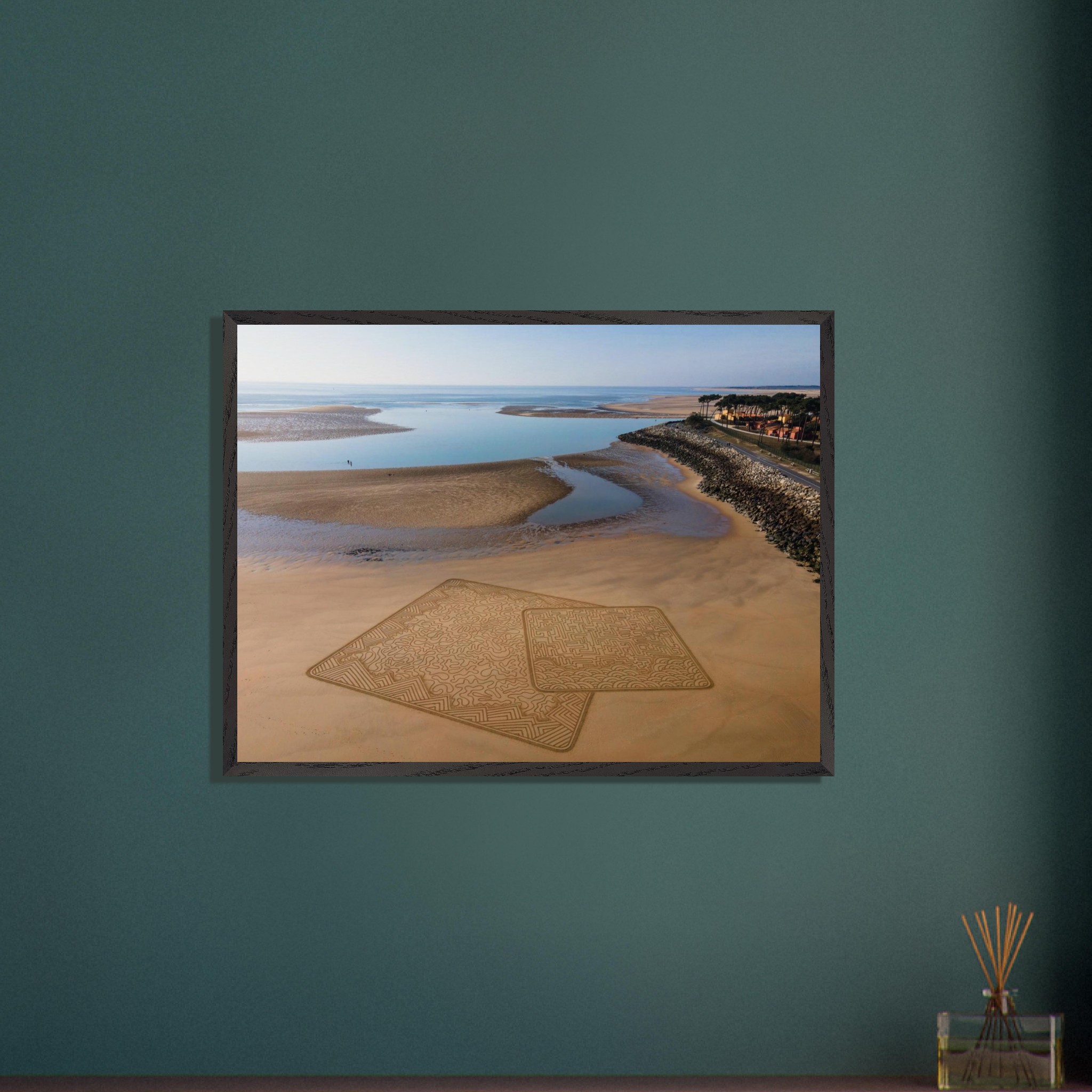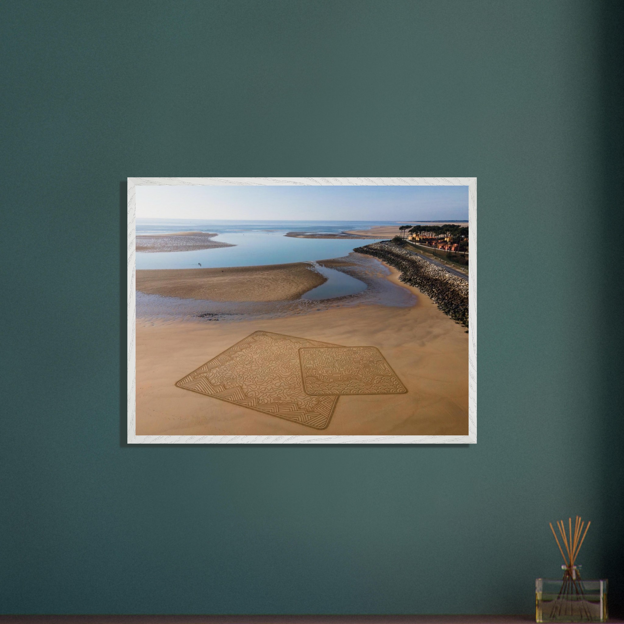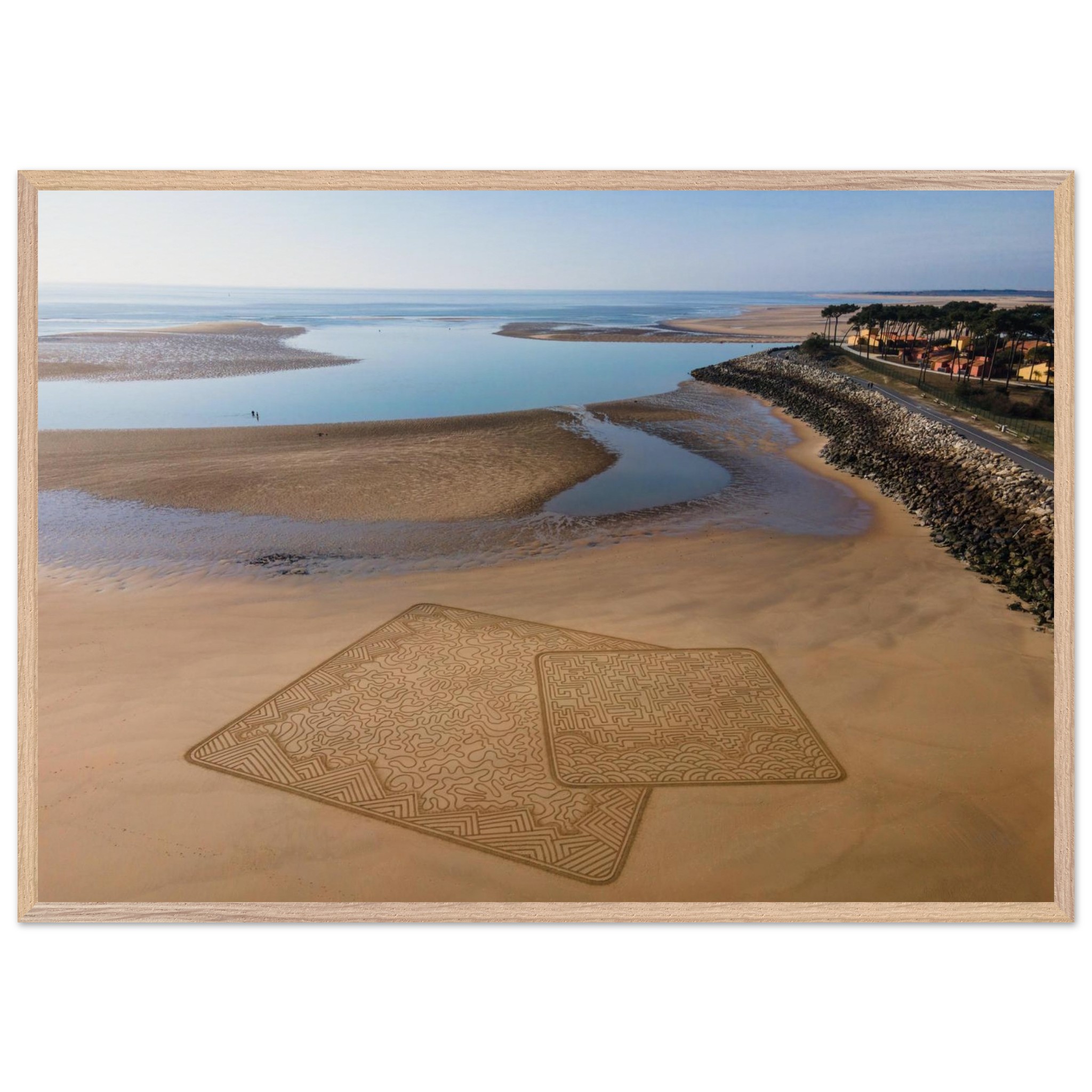 Un labyrinthe poétique inscrit sur le sable, suspendu entre deux mondes.