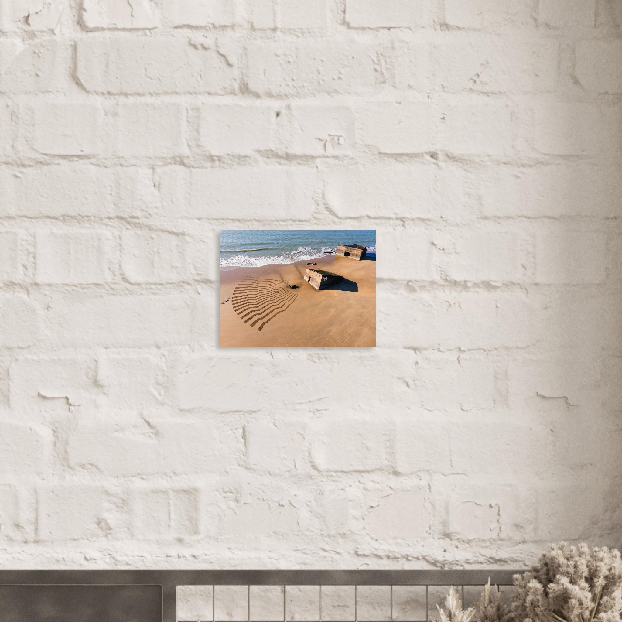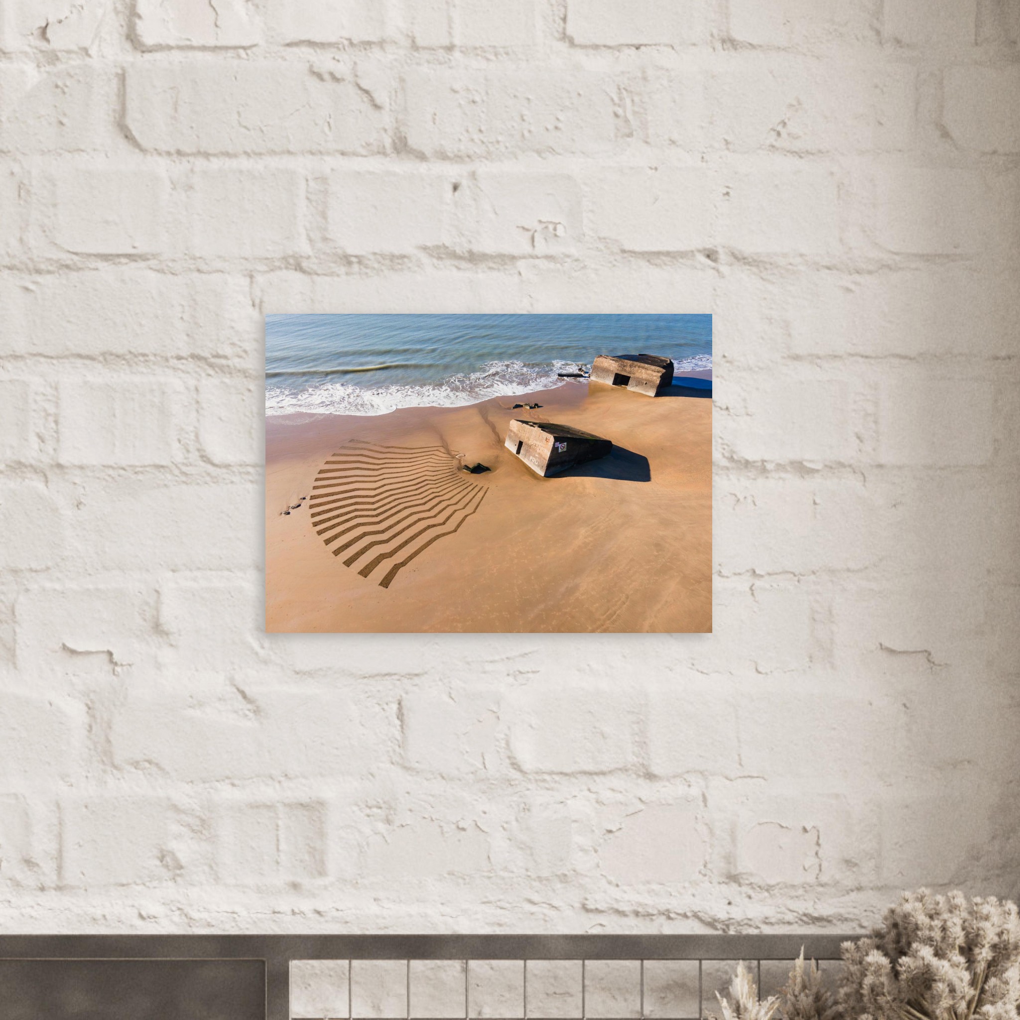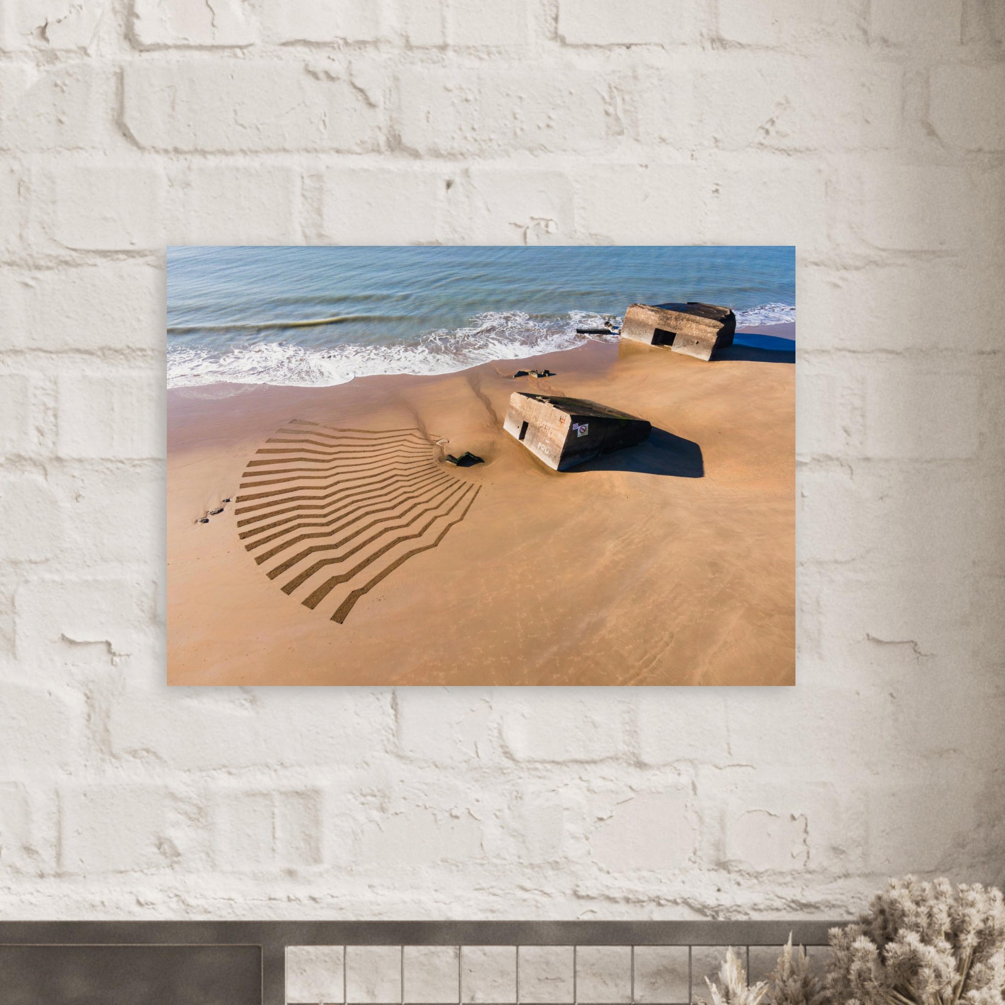“Blockhaus levant” est une fresque effet mer dessinée au pied des blockhaus échoués sur la plage, vestiges figés dans le