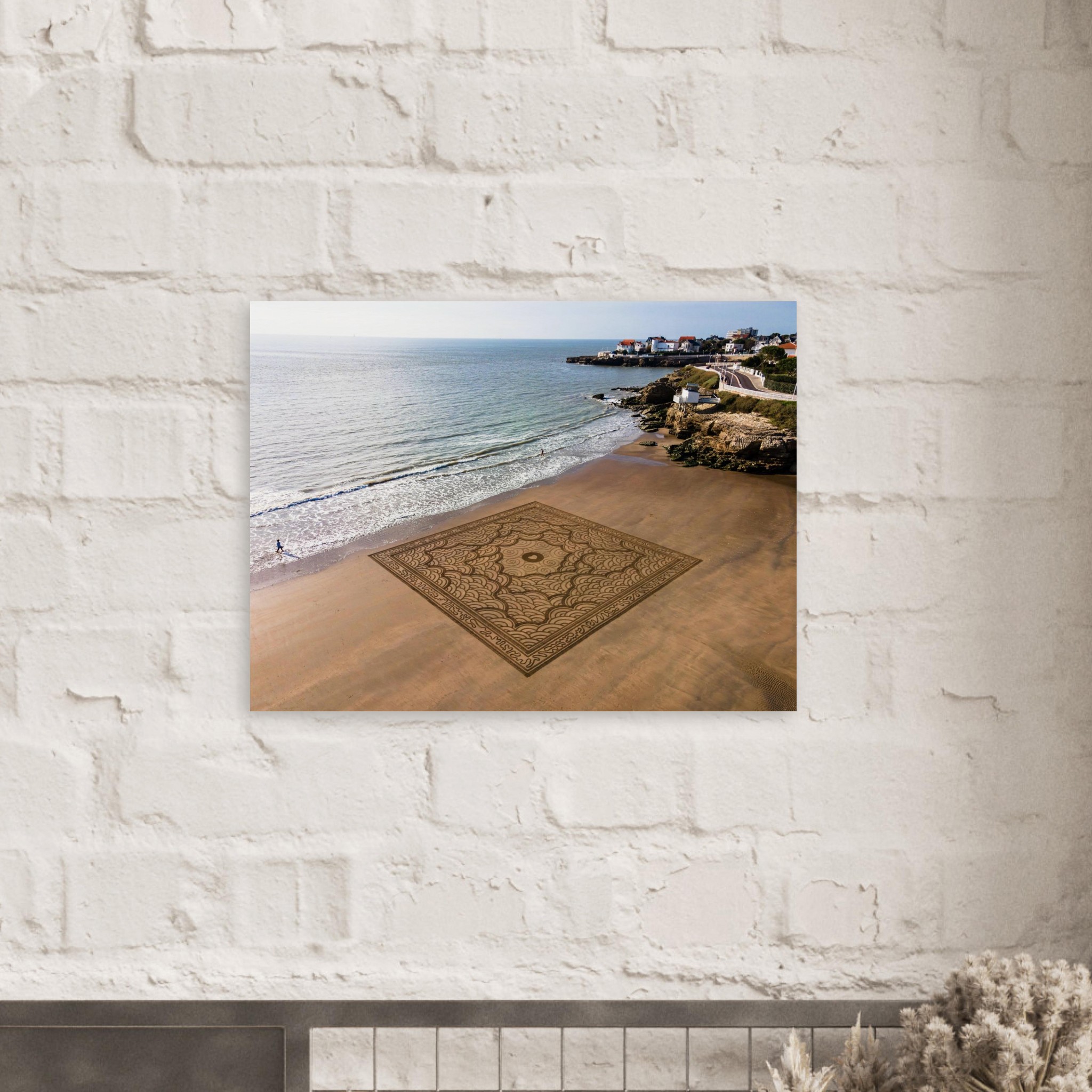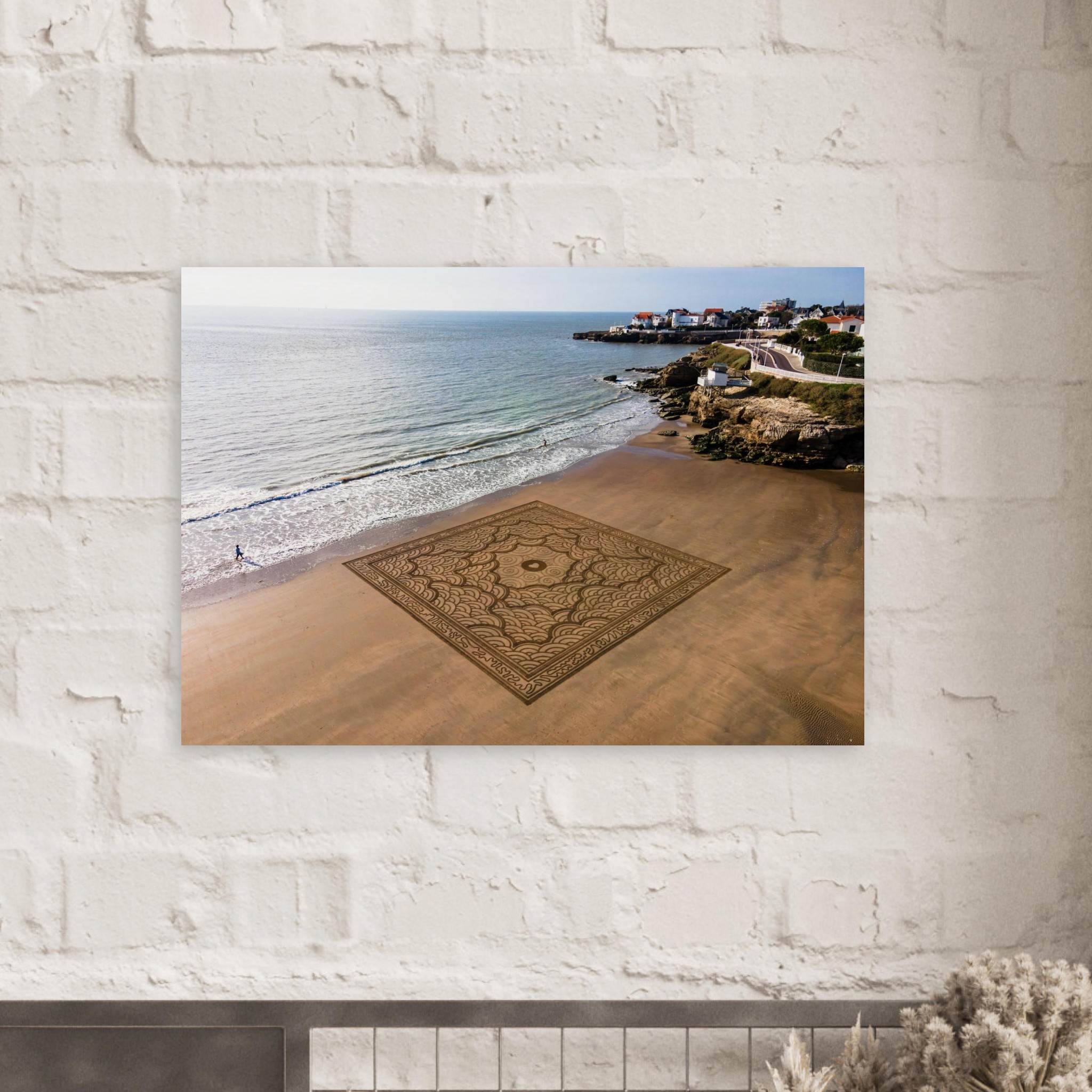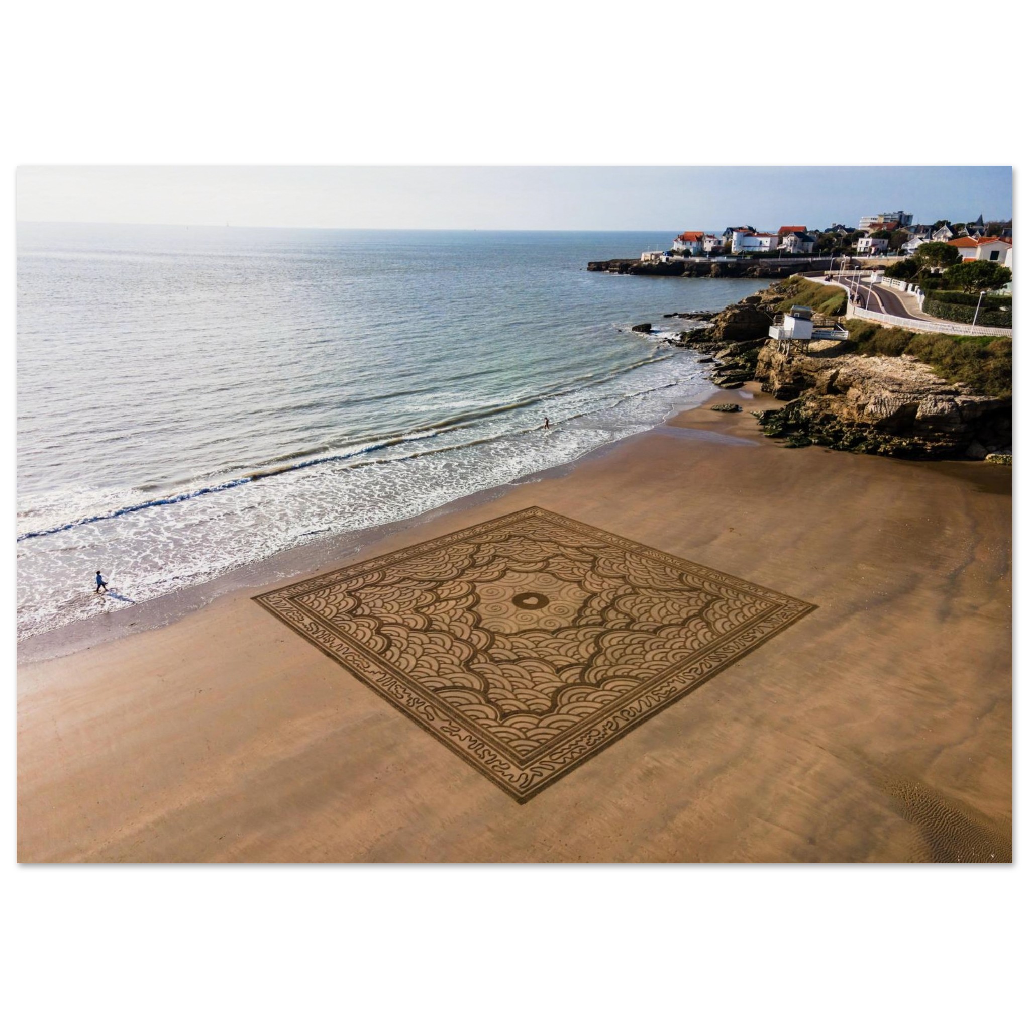 Cette photographie fine art immortalise l’instant fragile avant que la marée ne l’efface, capturant toute l’énergie visuelle de cette création monumentale.
