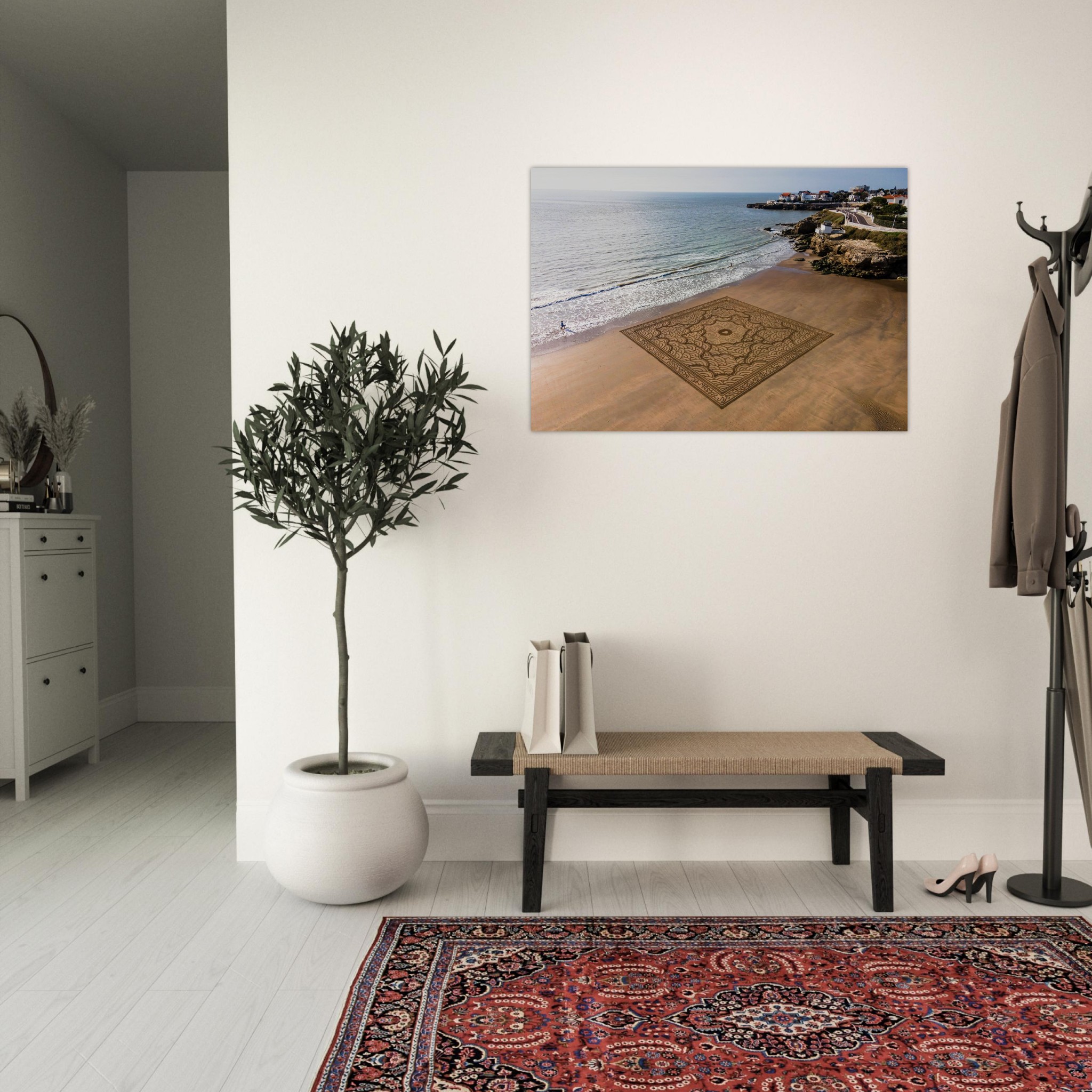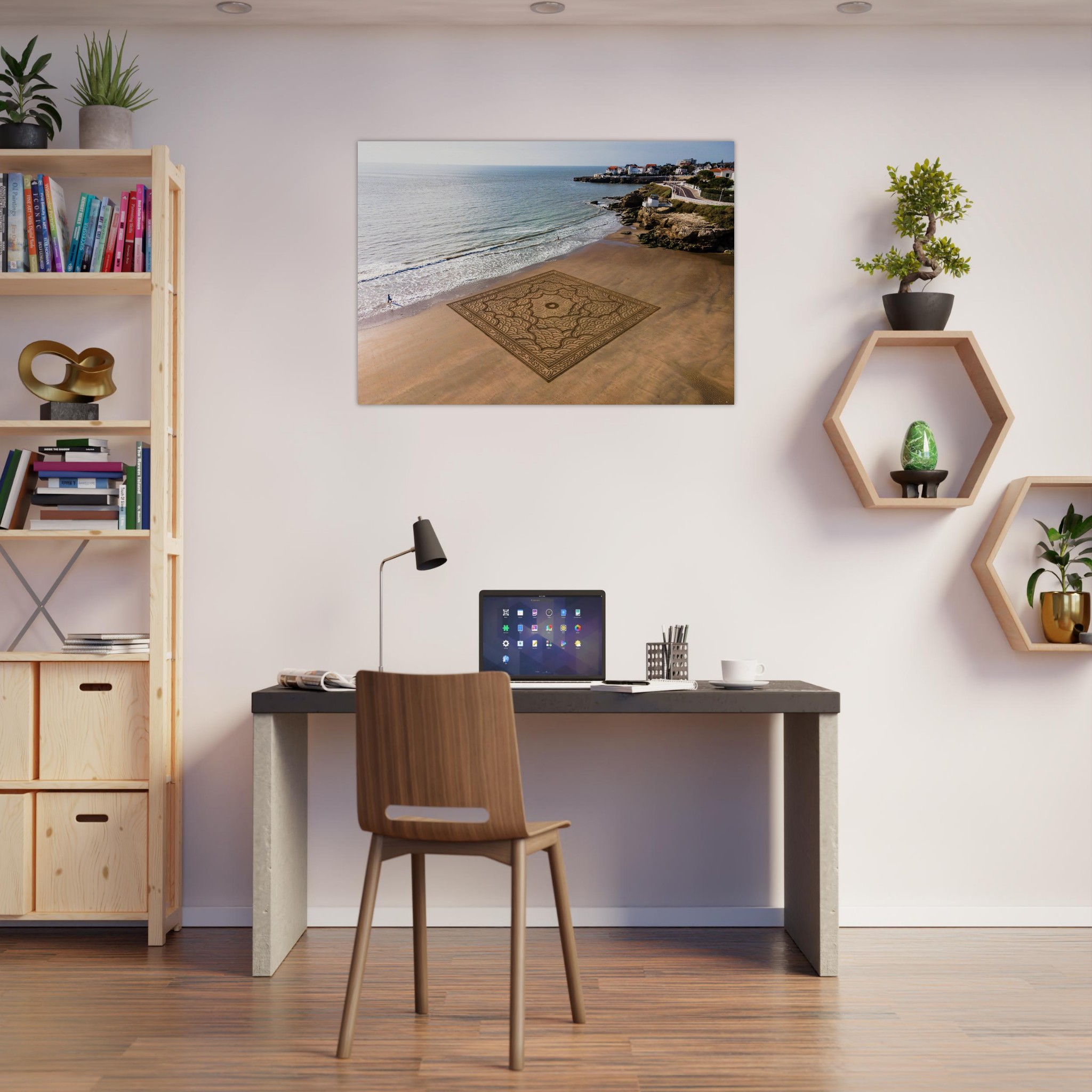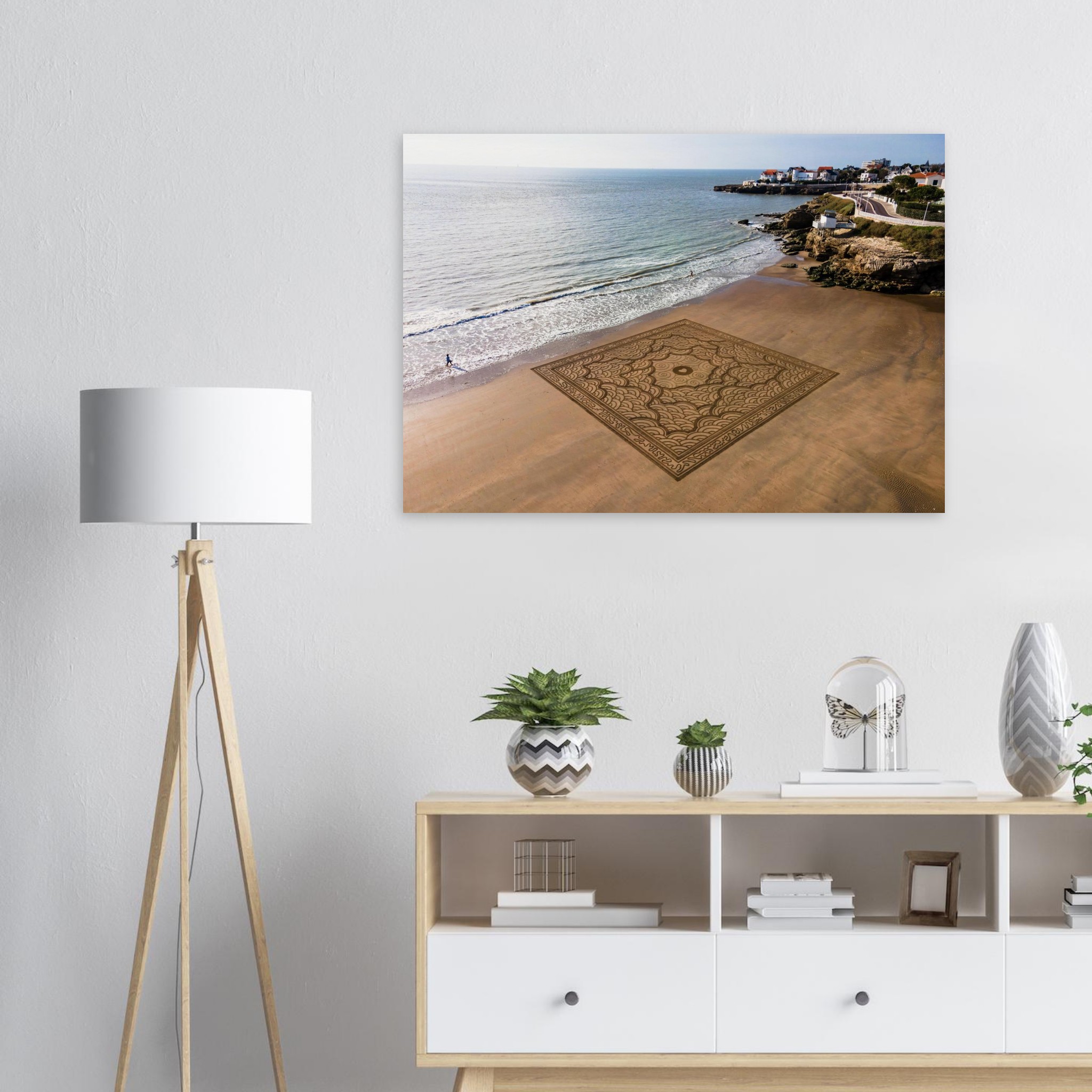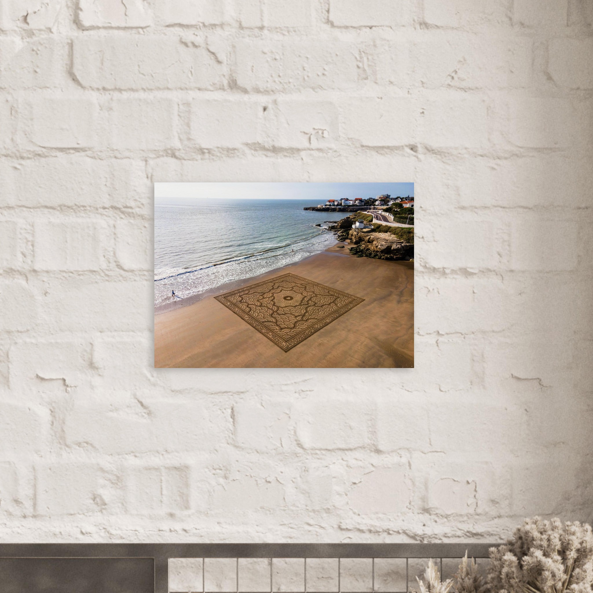 Cette photographie fine art immortalise l’instant fragile avant que la marée ne l’efface, capturant toute l’énergie visuelle de cette création monumentale.