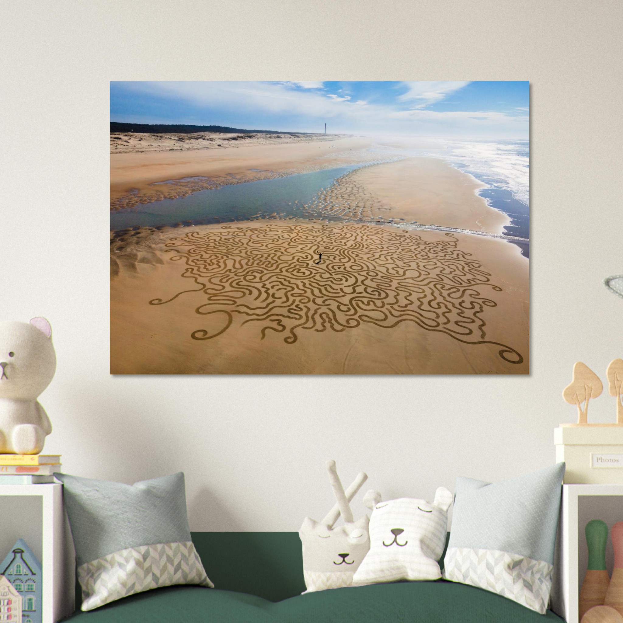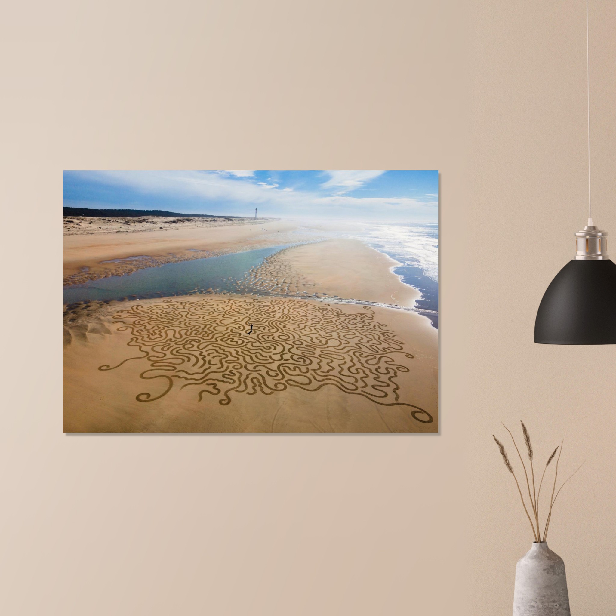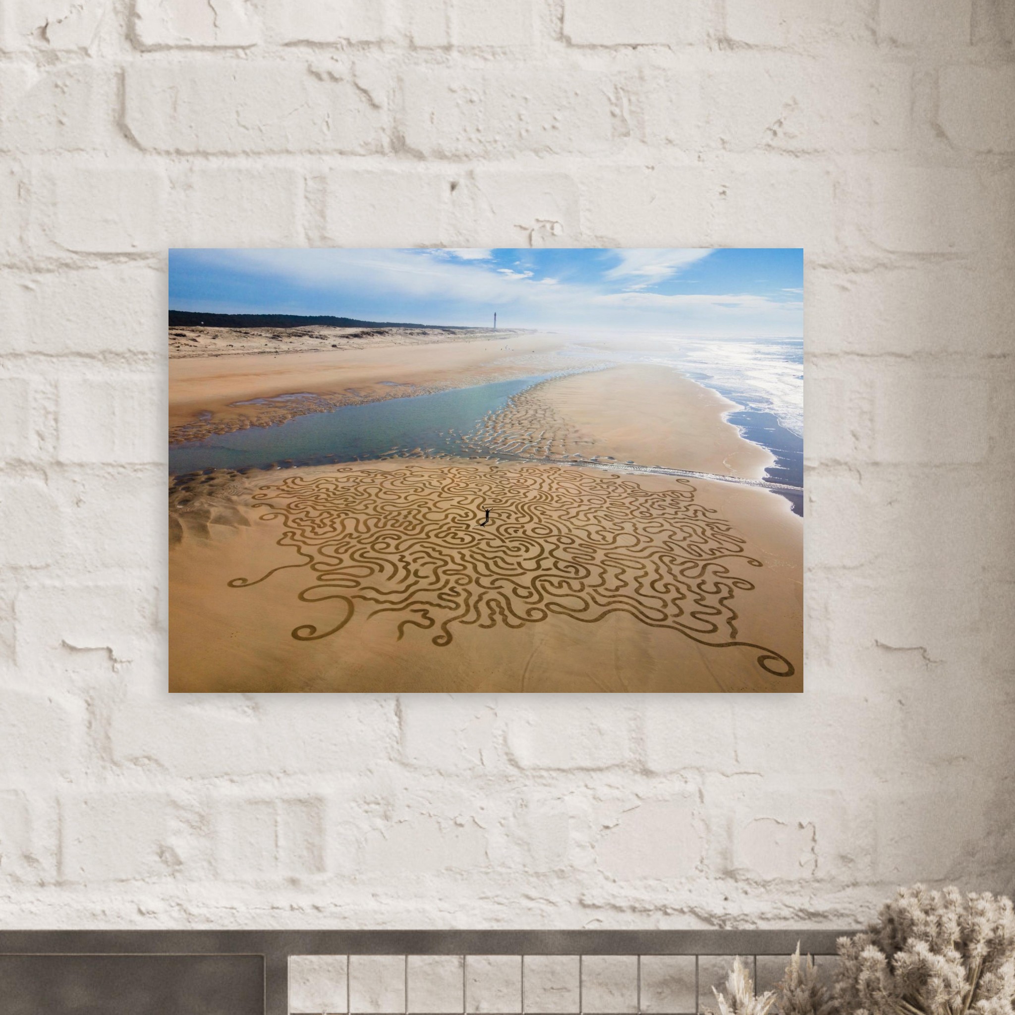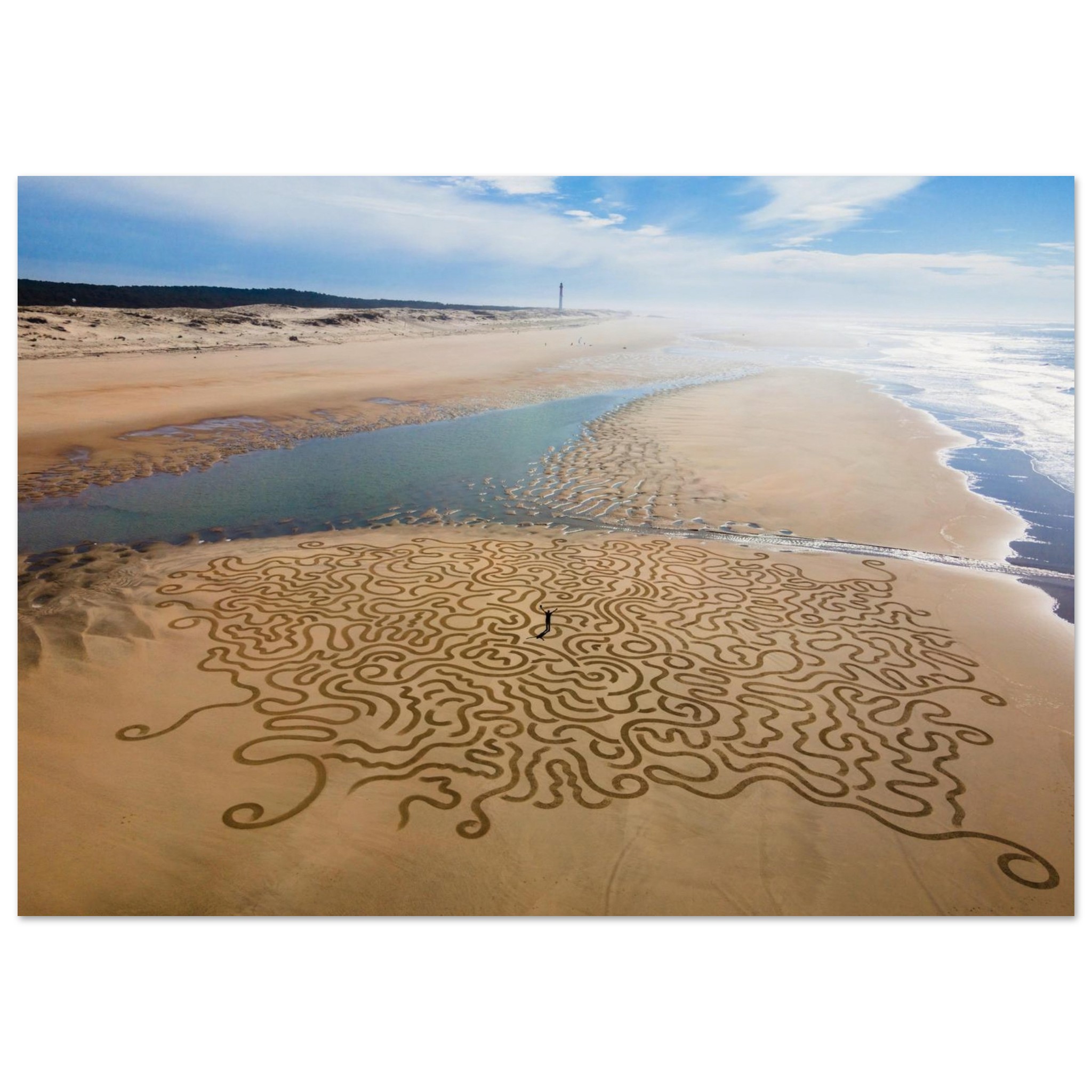 Cette œuvre évoque la fluidité, le mouvement et la créativité brute, avant que la marée ne l’efface.