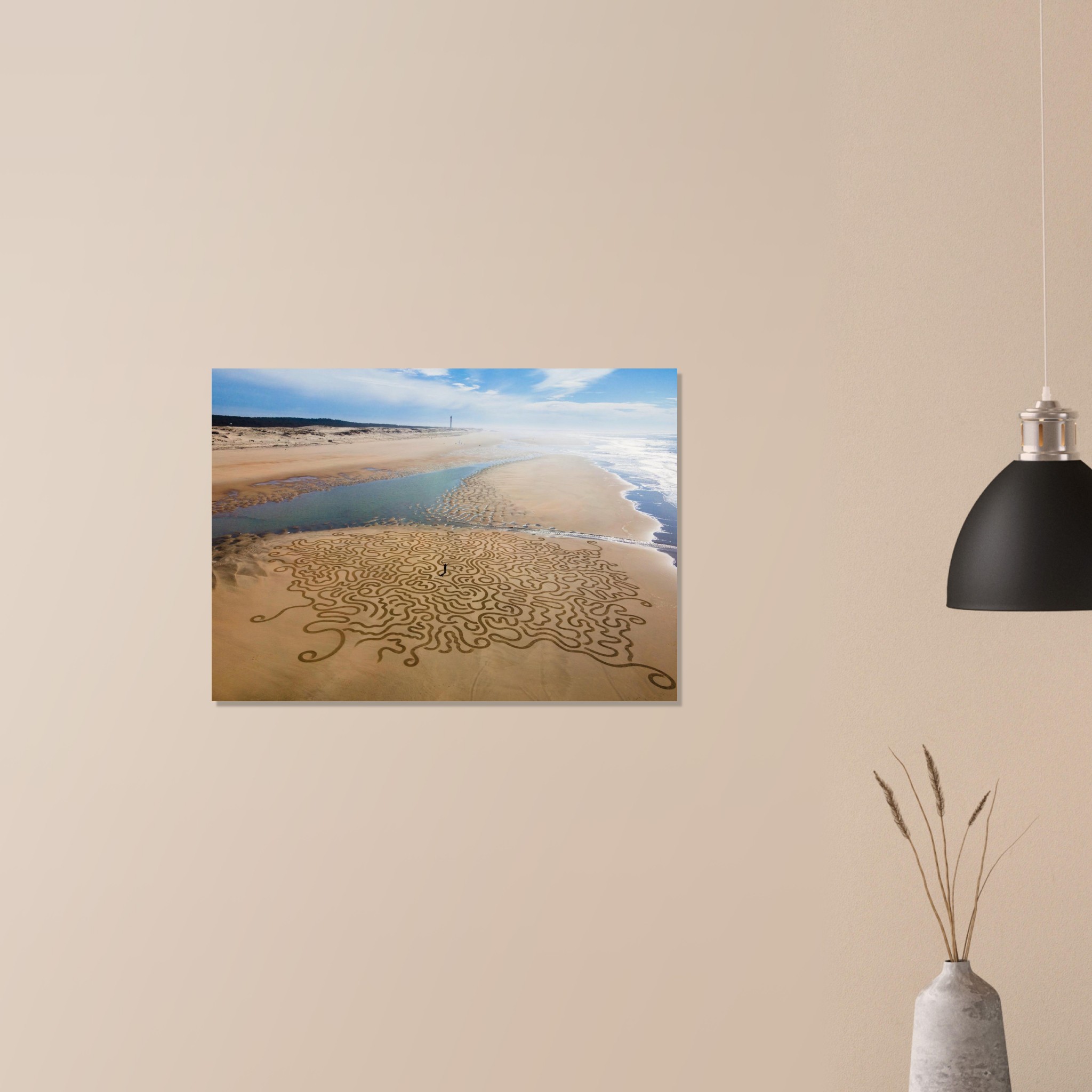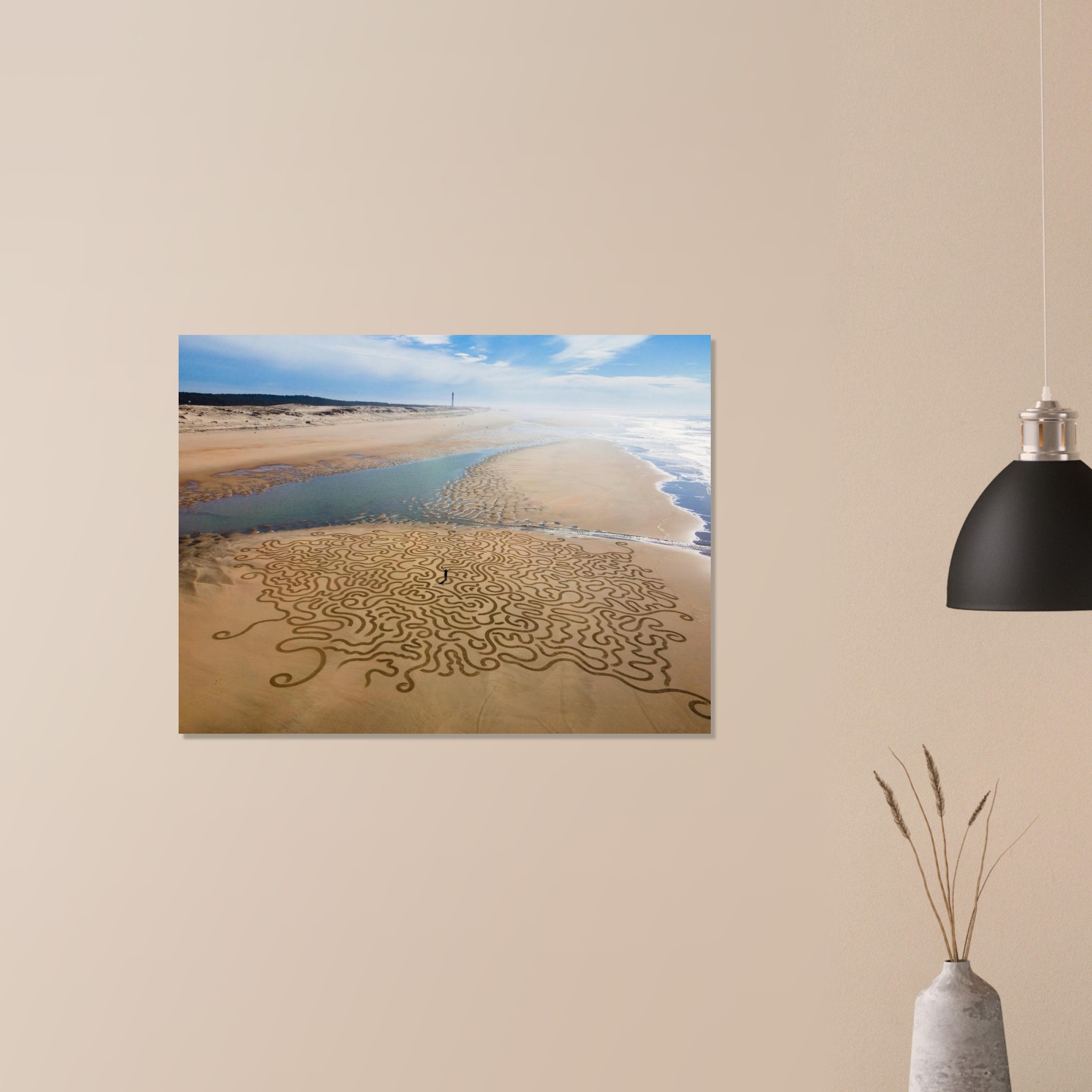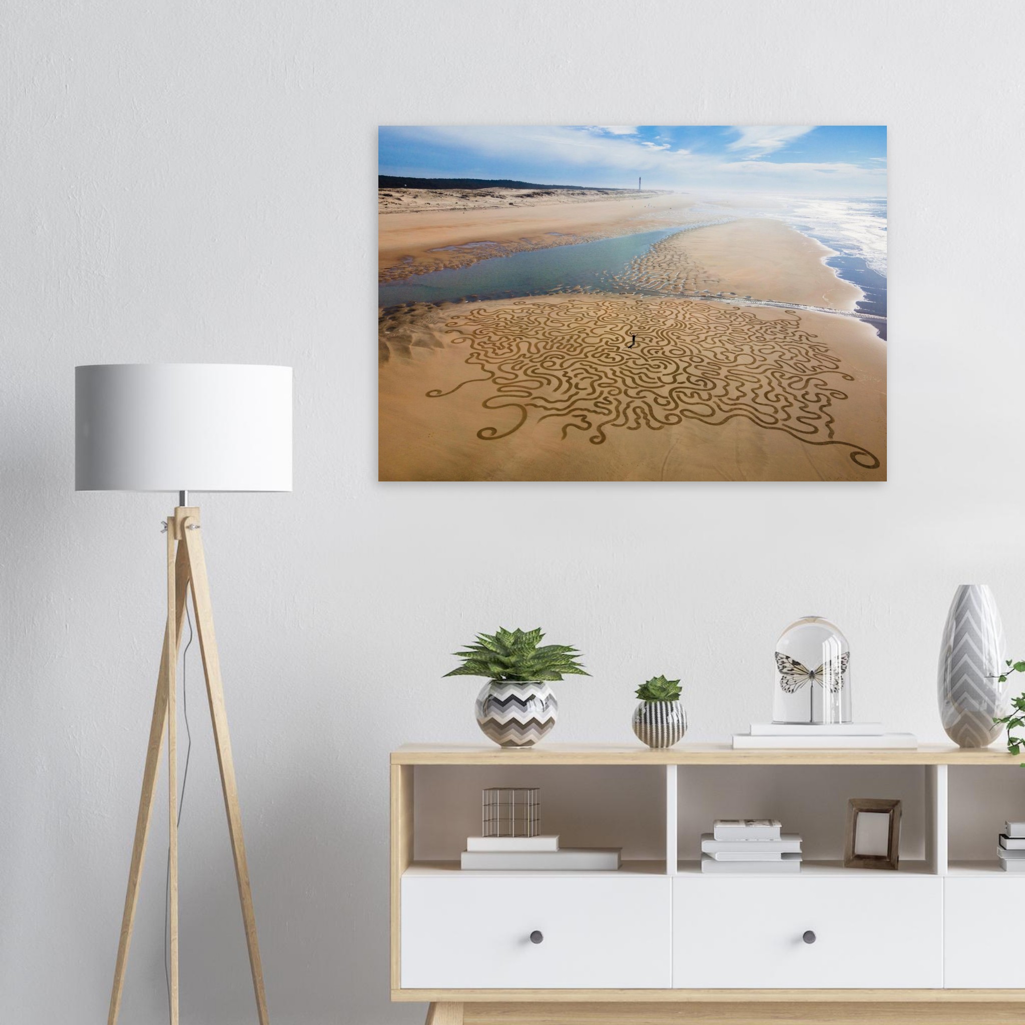 Cette œuvre évoque la fluidité, le mouvement et la créativité brute, avant que la marée ne l’efface.