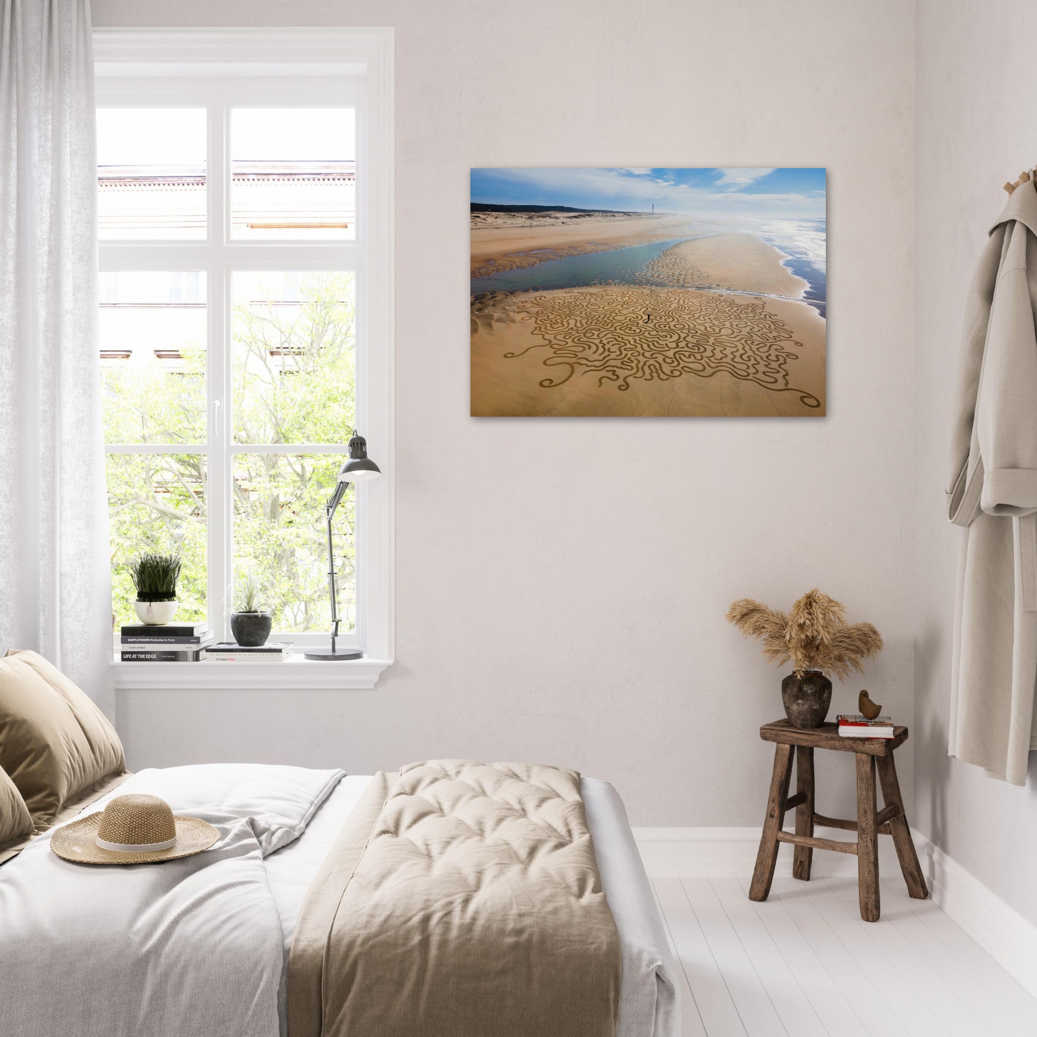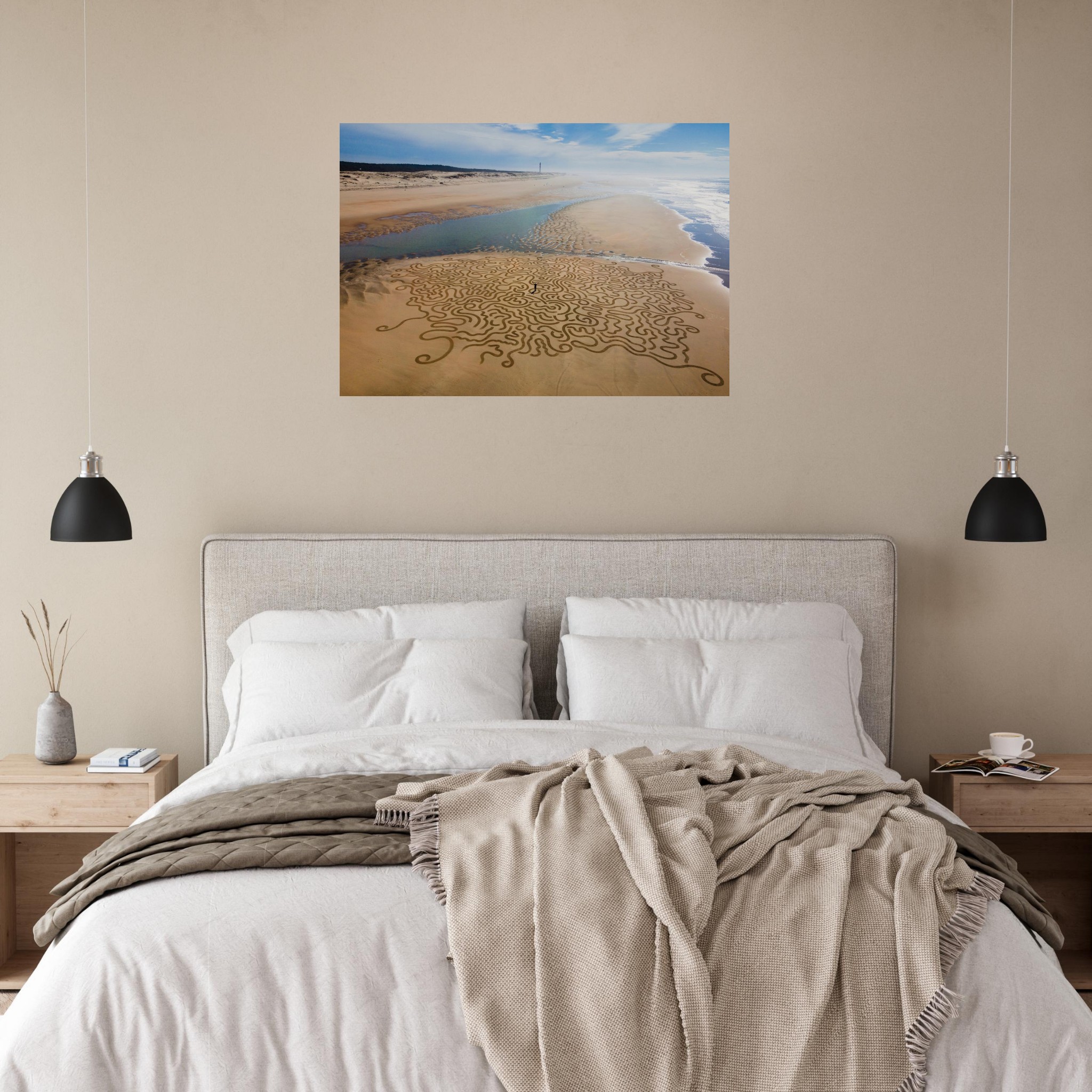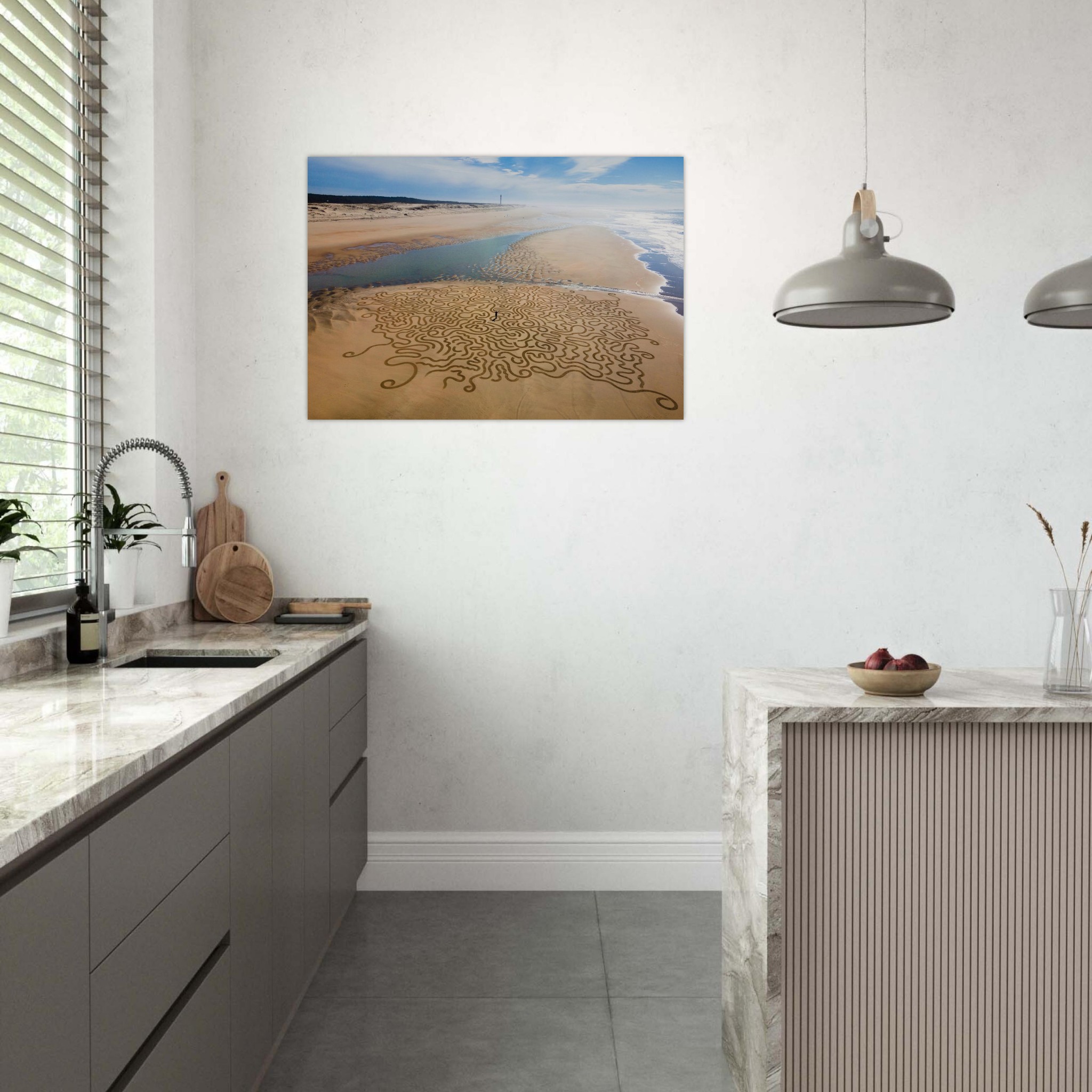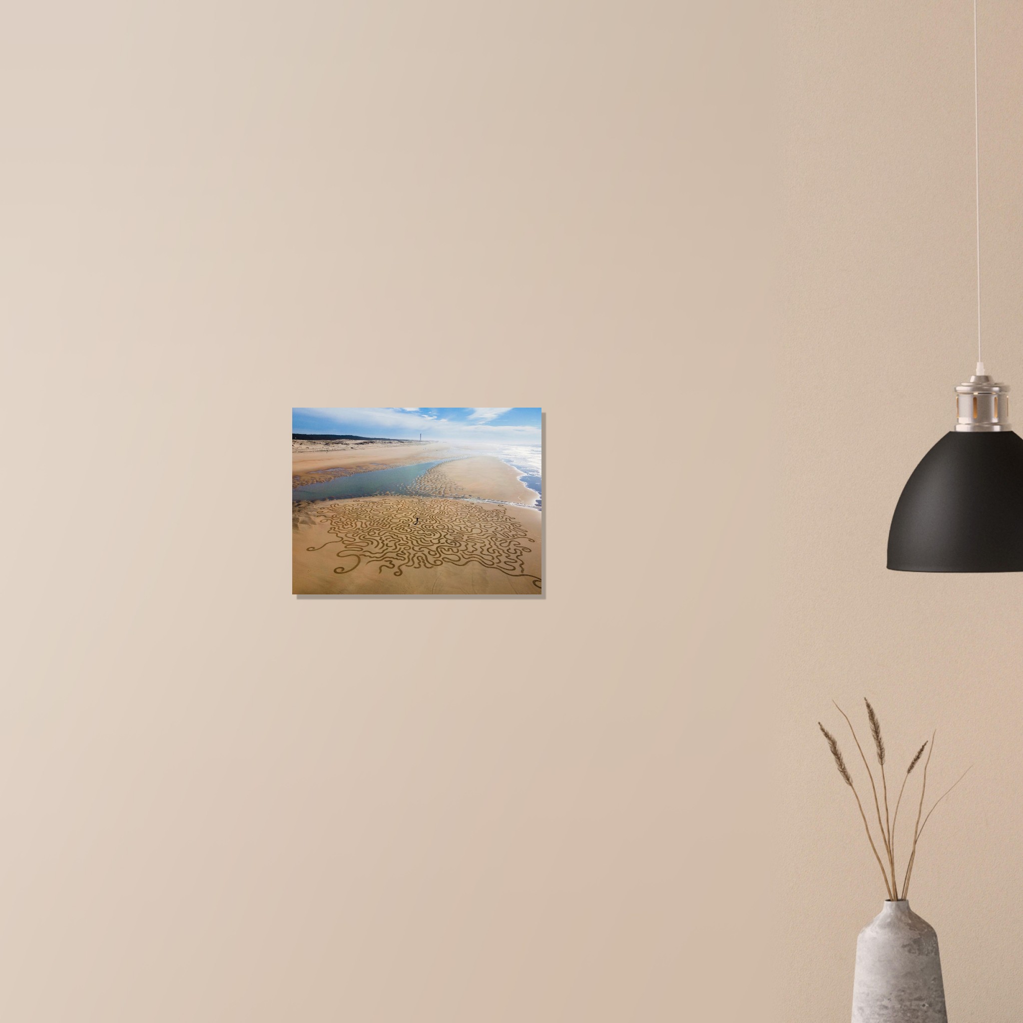 Cette œuvre évoque la fluidité, le mouvement et la créativité brute, avant que la marée ne l’efface.