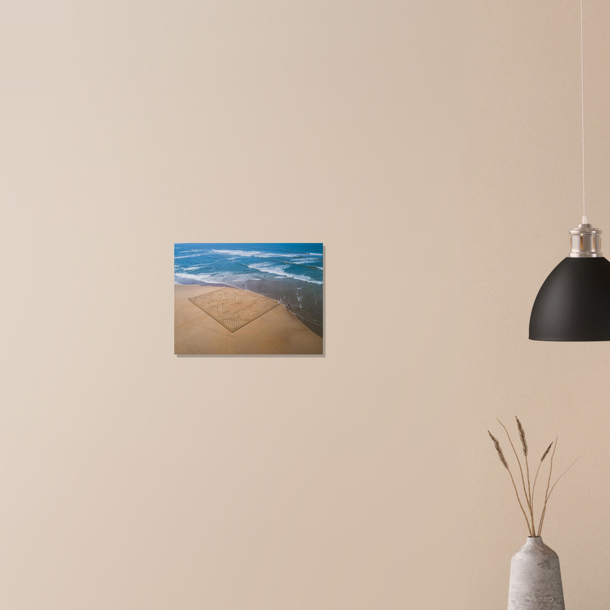 Dessiné avec précision dans le sable, ce motif géométrique aux lignes entrecroisées évoque à la fois un tapis oriental et une fresque contemporaine.