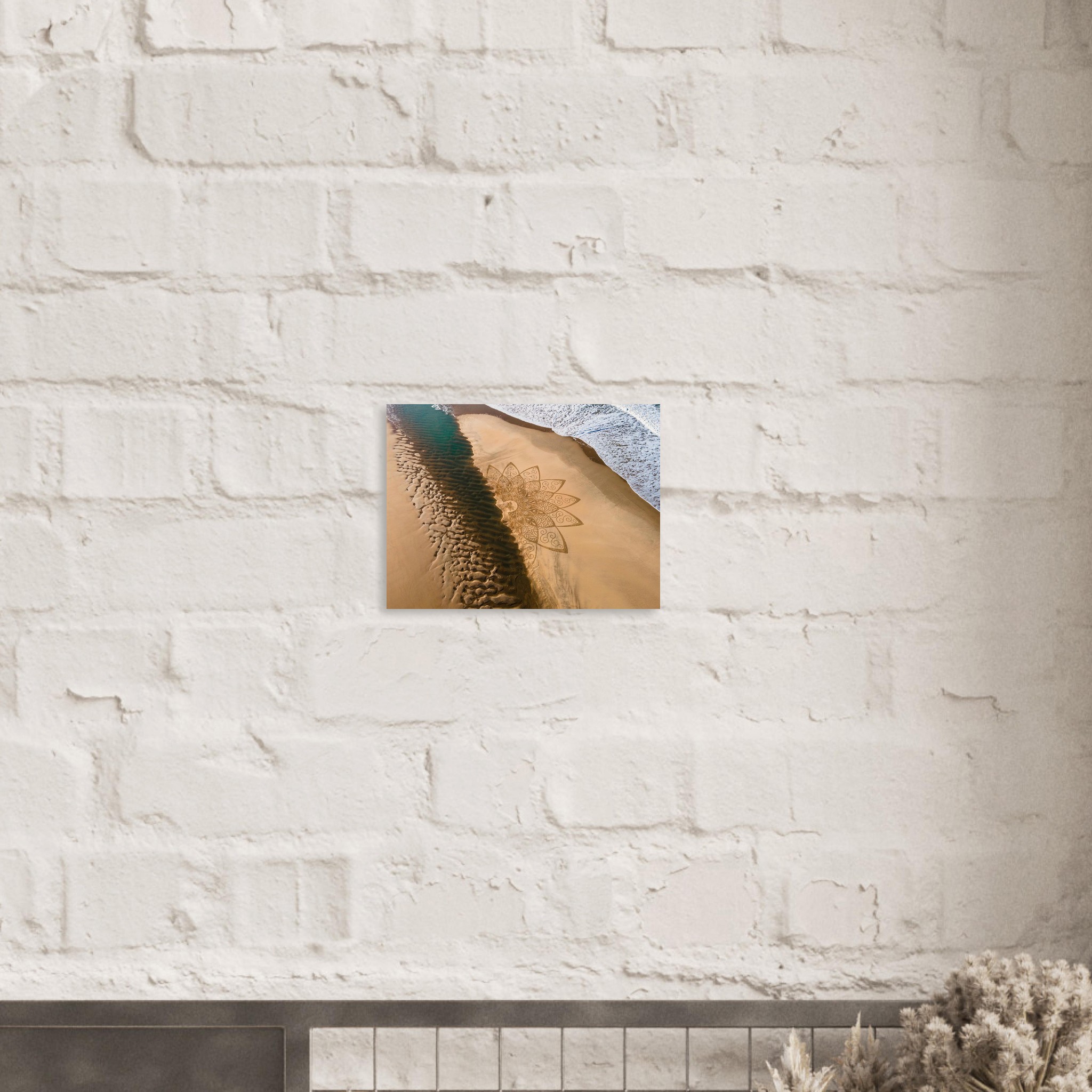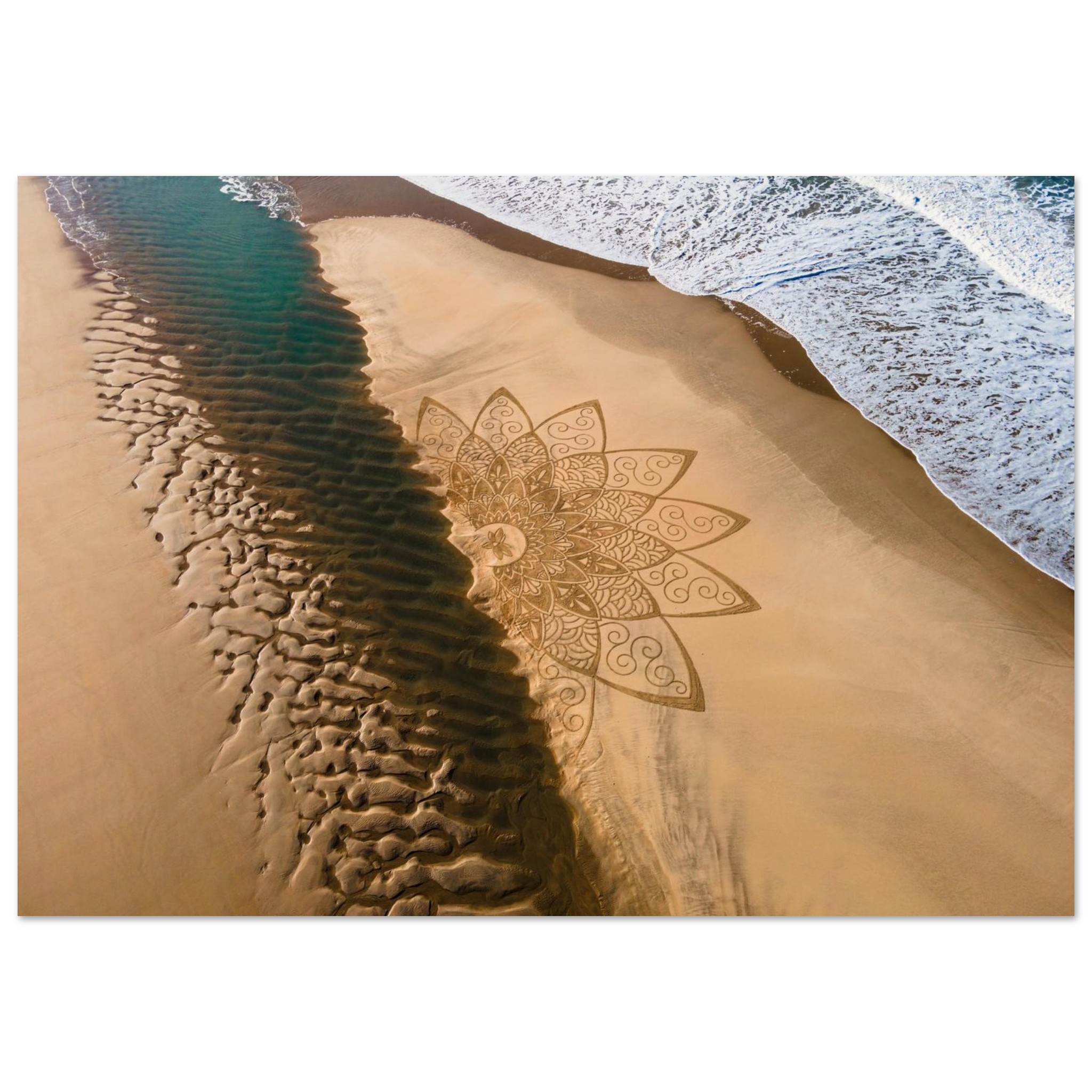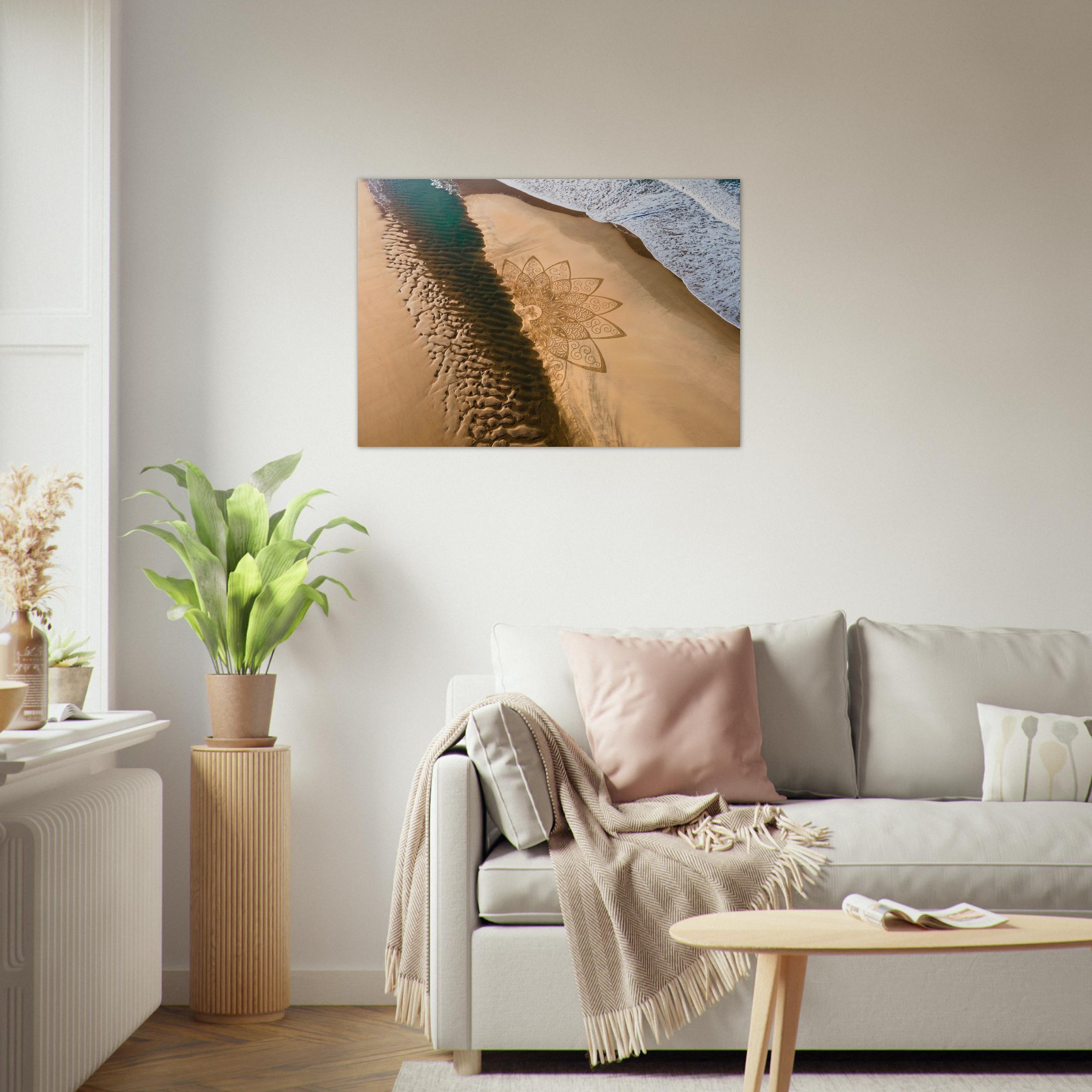 Un mandala éphémère tracé sur le sable, immortalisé avant d’être effacé par la mer. Une œuvre d’équilibre et de sérénité, prête à sublimer votre intérieur.