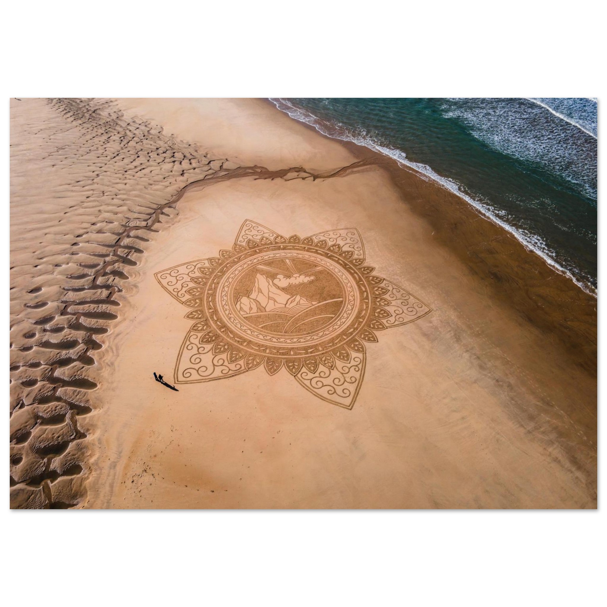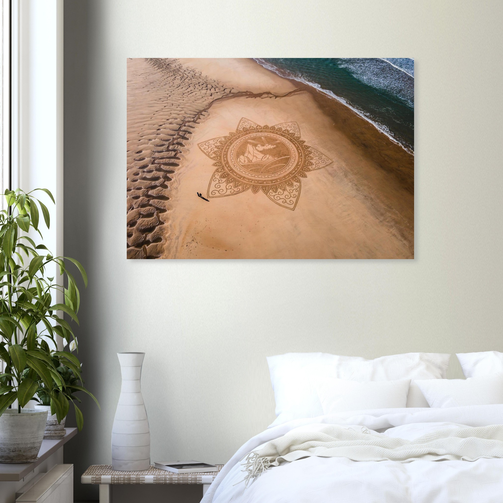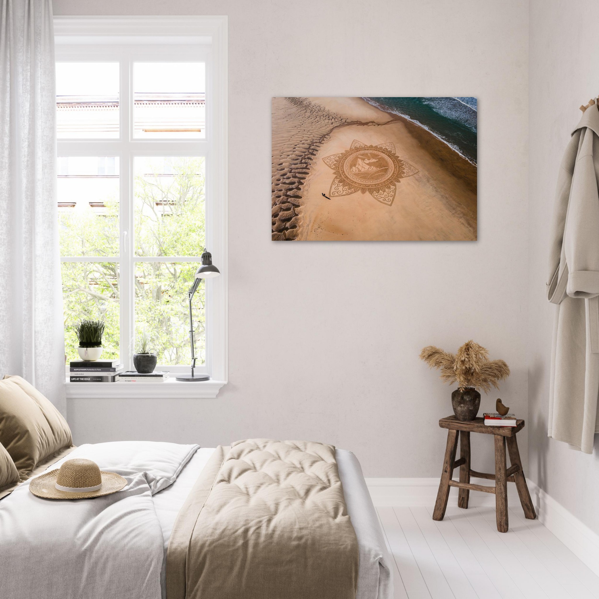 Cette œuvre effet mer, réalisée sur le sable, devient en photographie fine art une invitation au recentrage et à la contemplation.