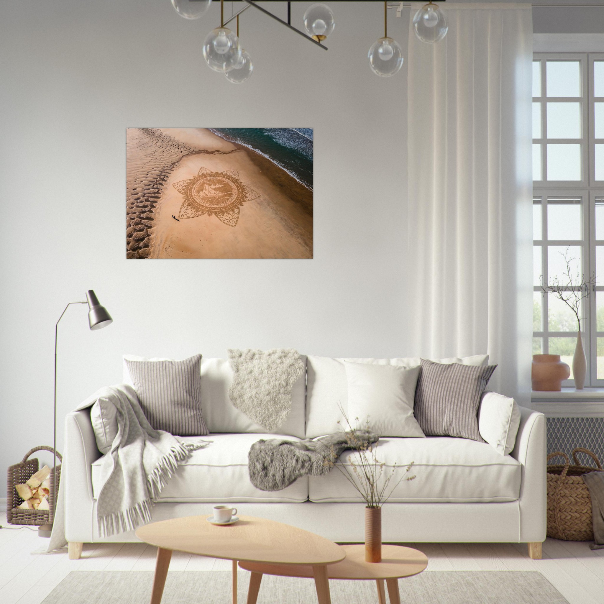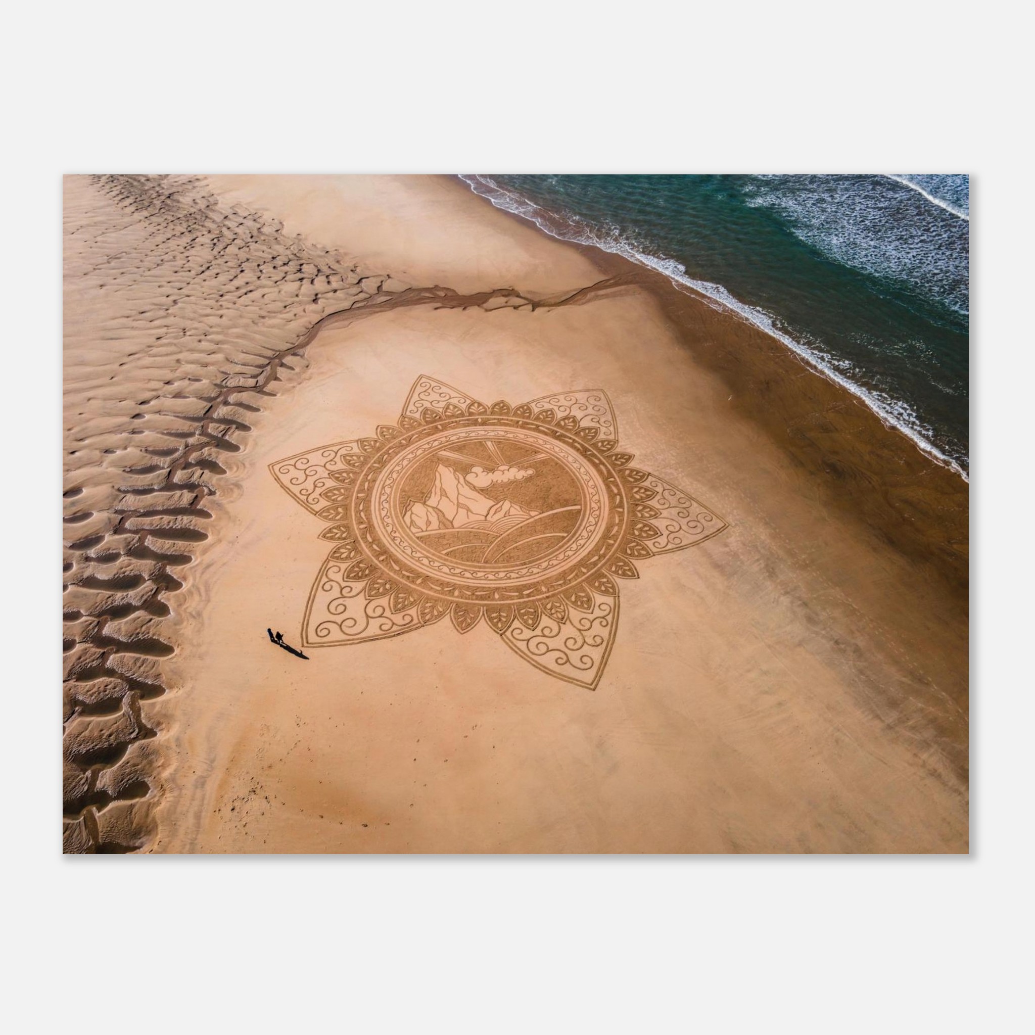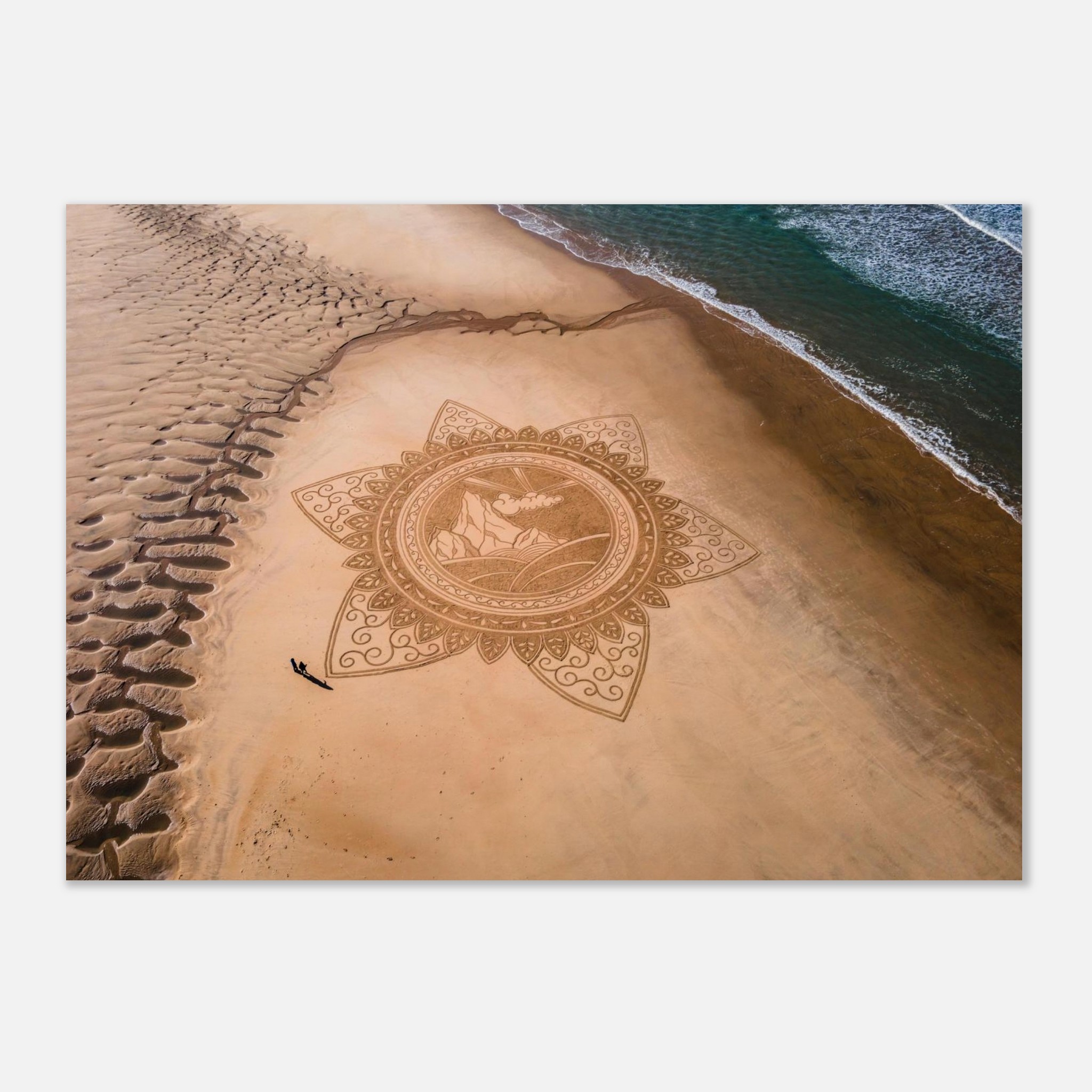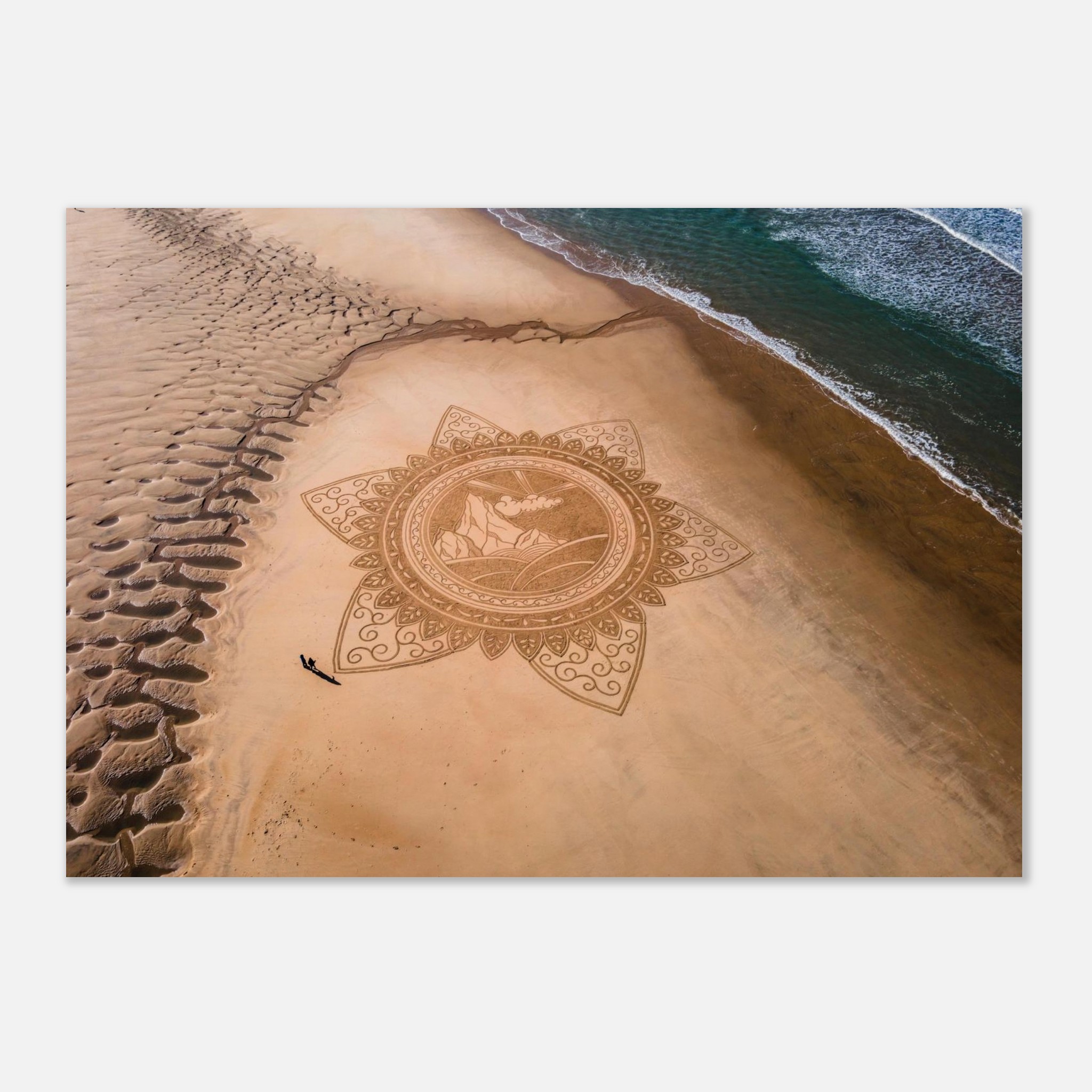Cette œuvre effet mer, réalisée sur le sable, devient en photographie fine art une invitation au recentrage et à la contemplation.