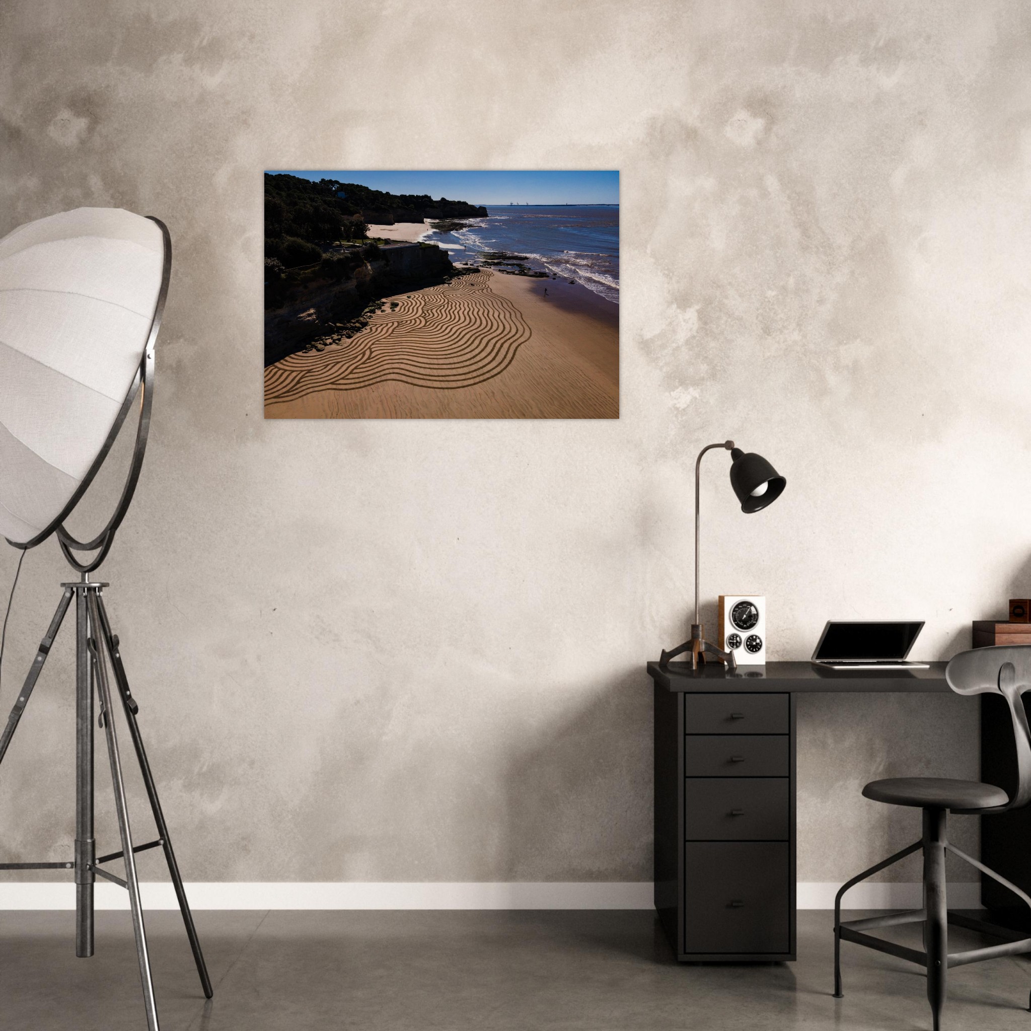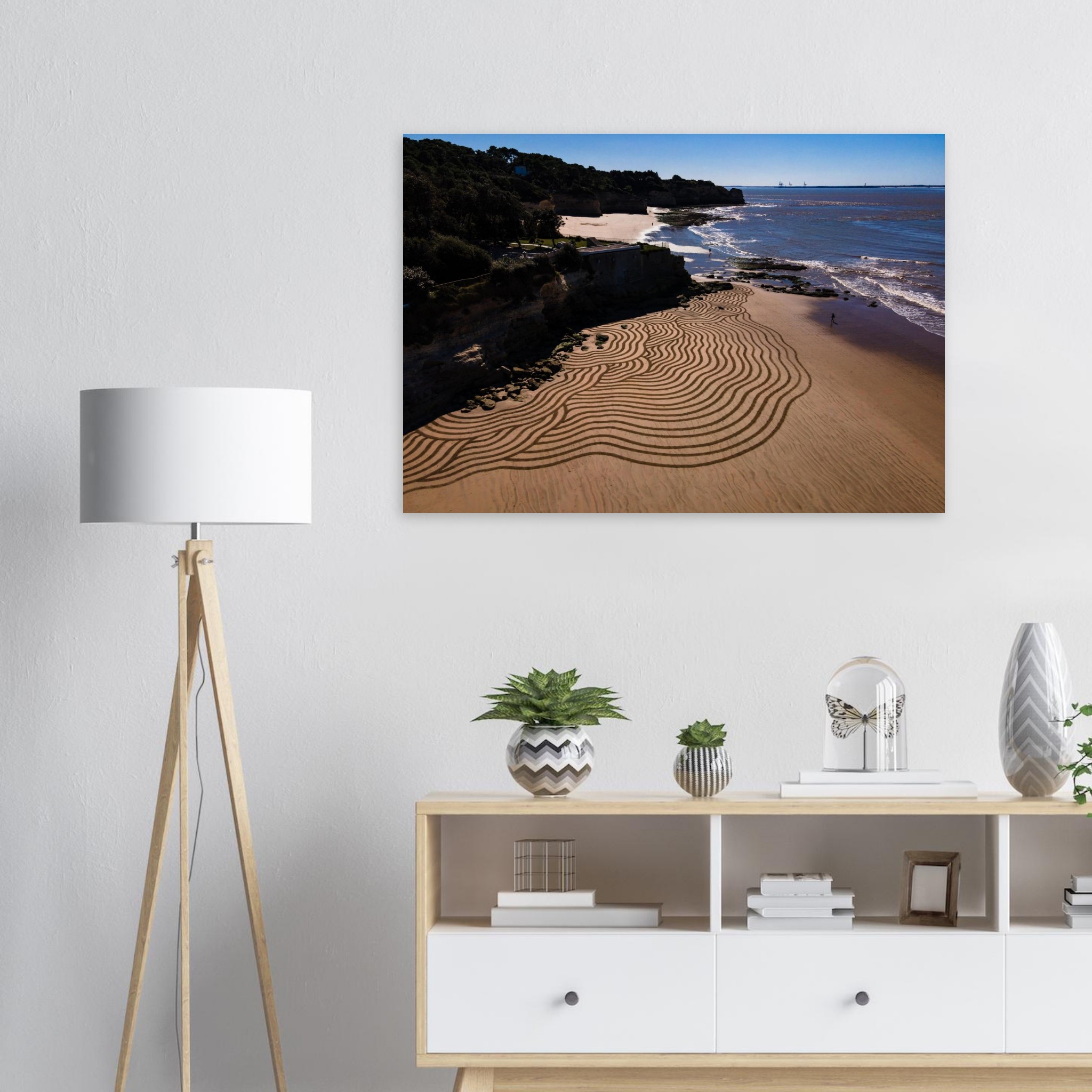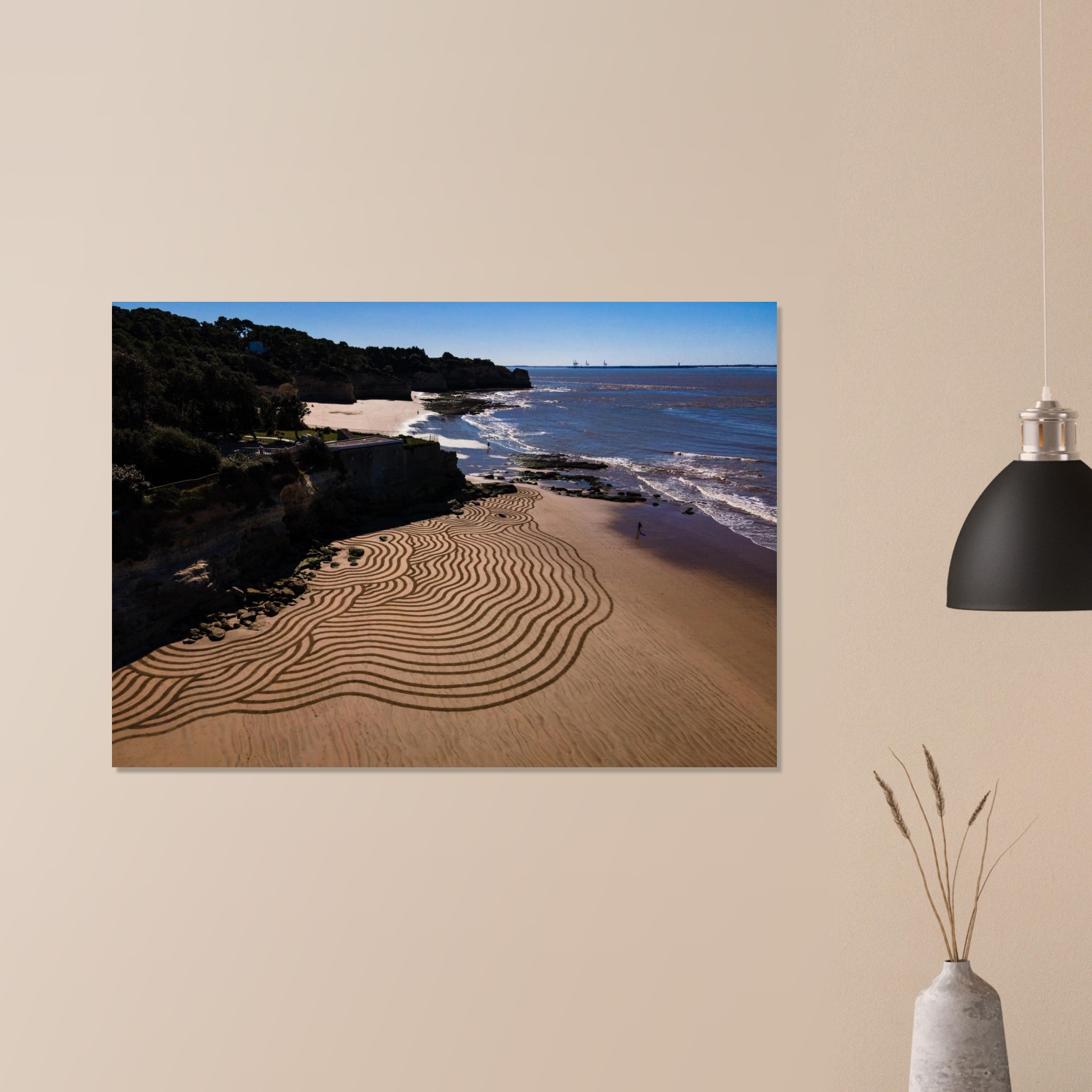 Une composition hypnotique de lignes dans le sable, inspirée des jardins zen et de la force des éléments. Tirage Fine Art vendu sans cadre, prêt à être sublimé selon vos envies.