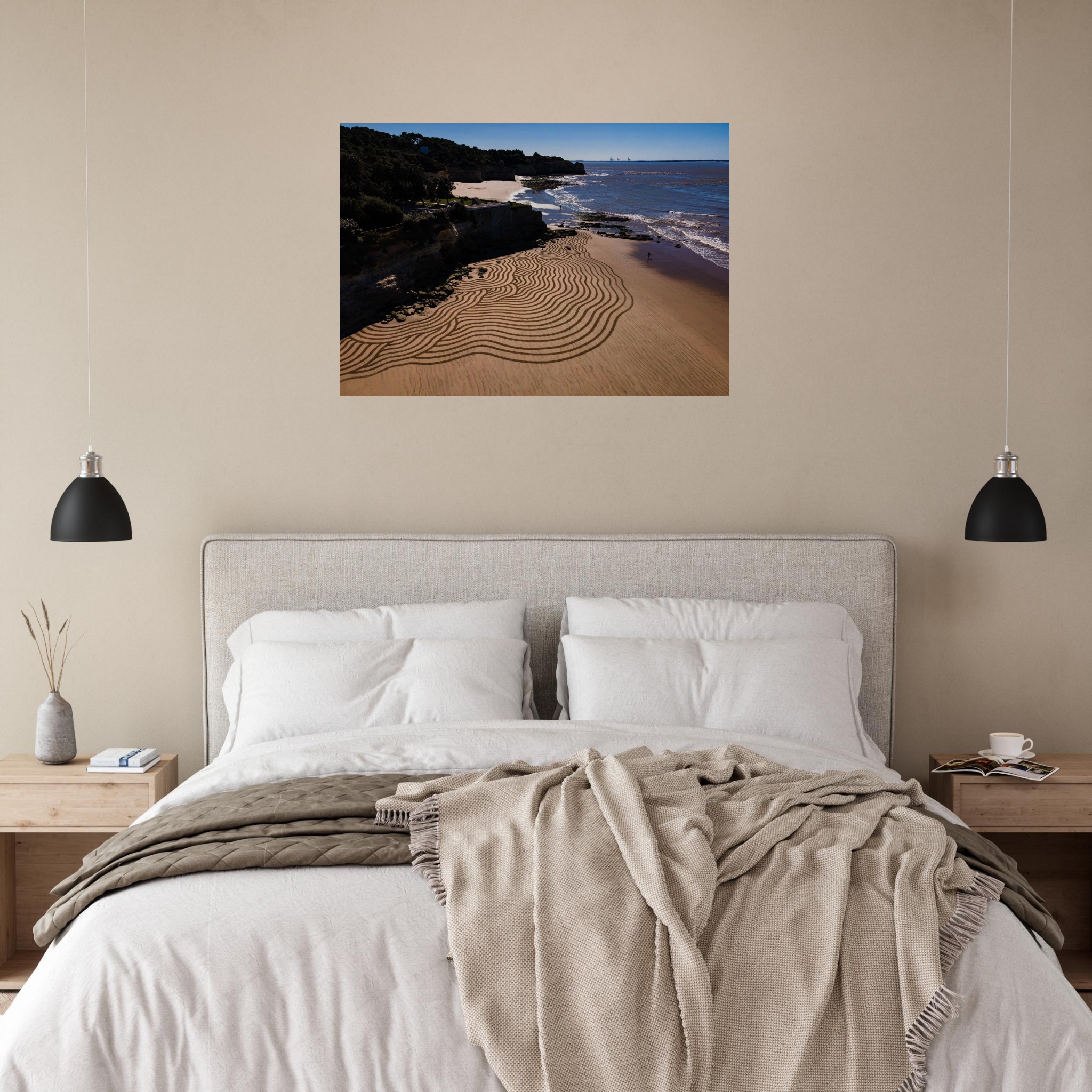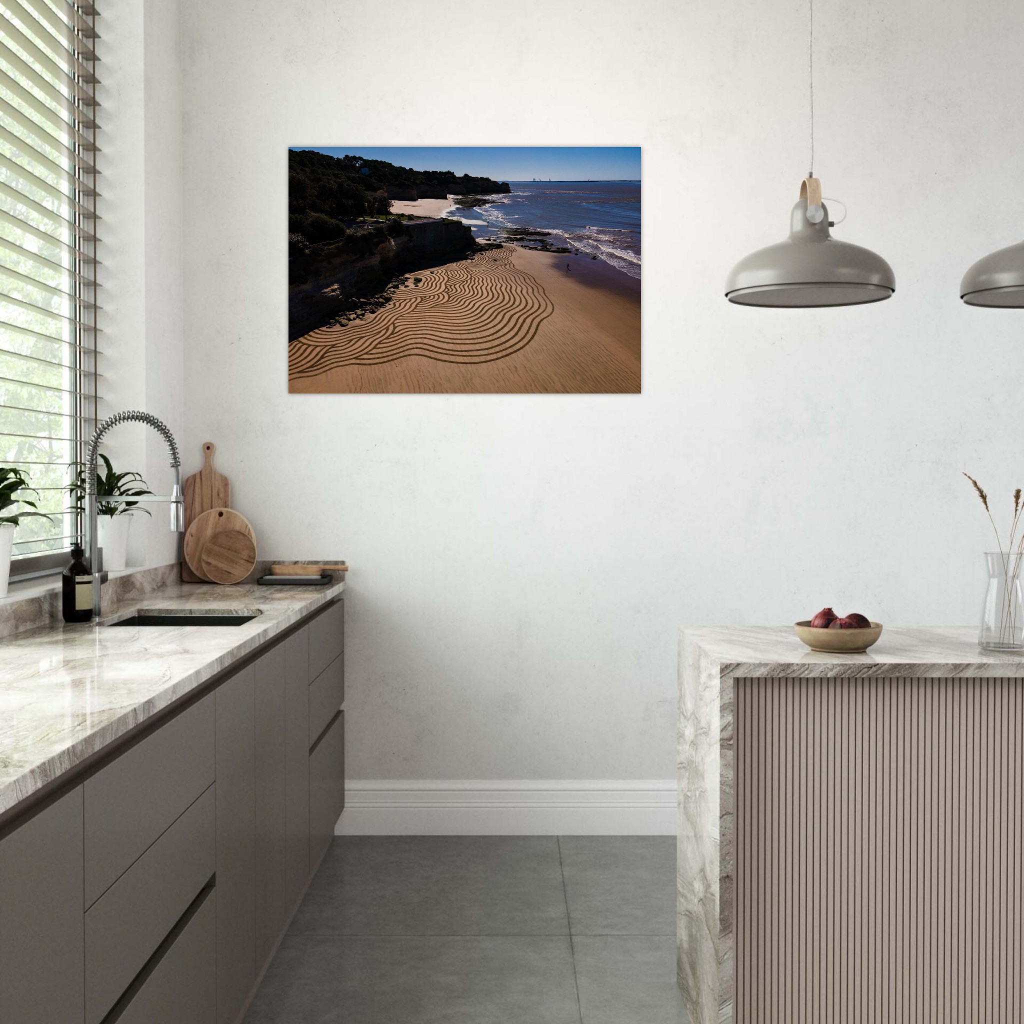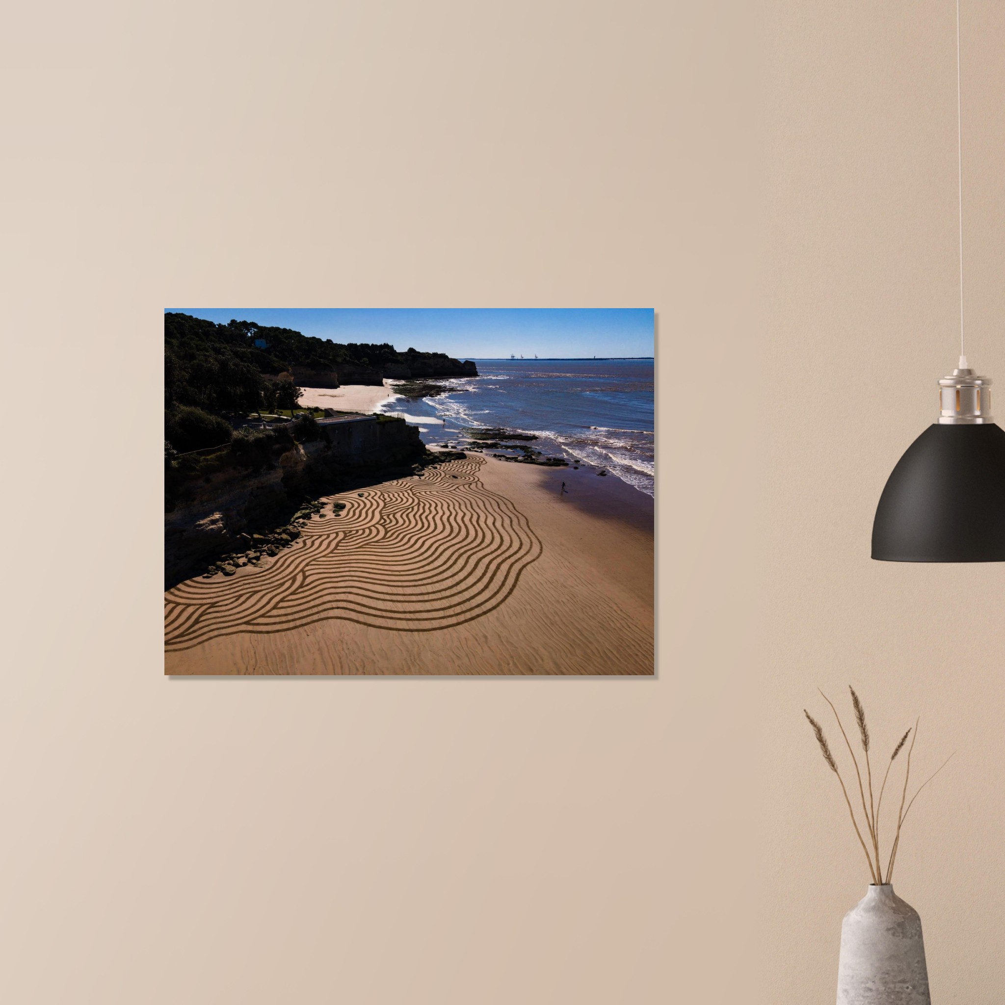 Une composition hypnotique de lignes dans le sable, inspirée des jardins zen et de la force des éléments. Tirage Fine Art vendu sans cadre, prêt à être sublimé selon vos envies.