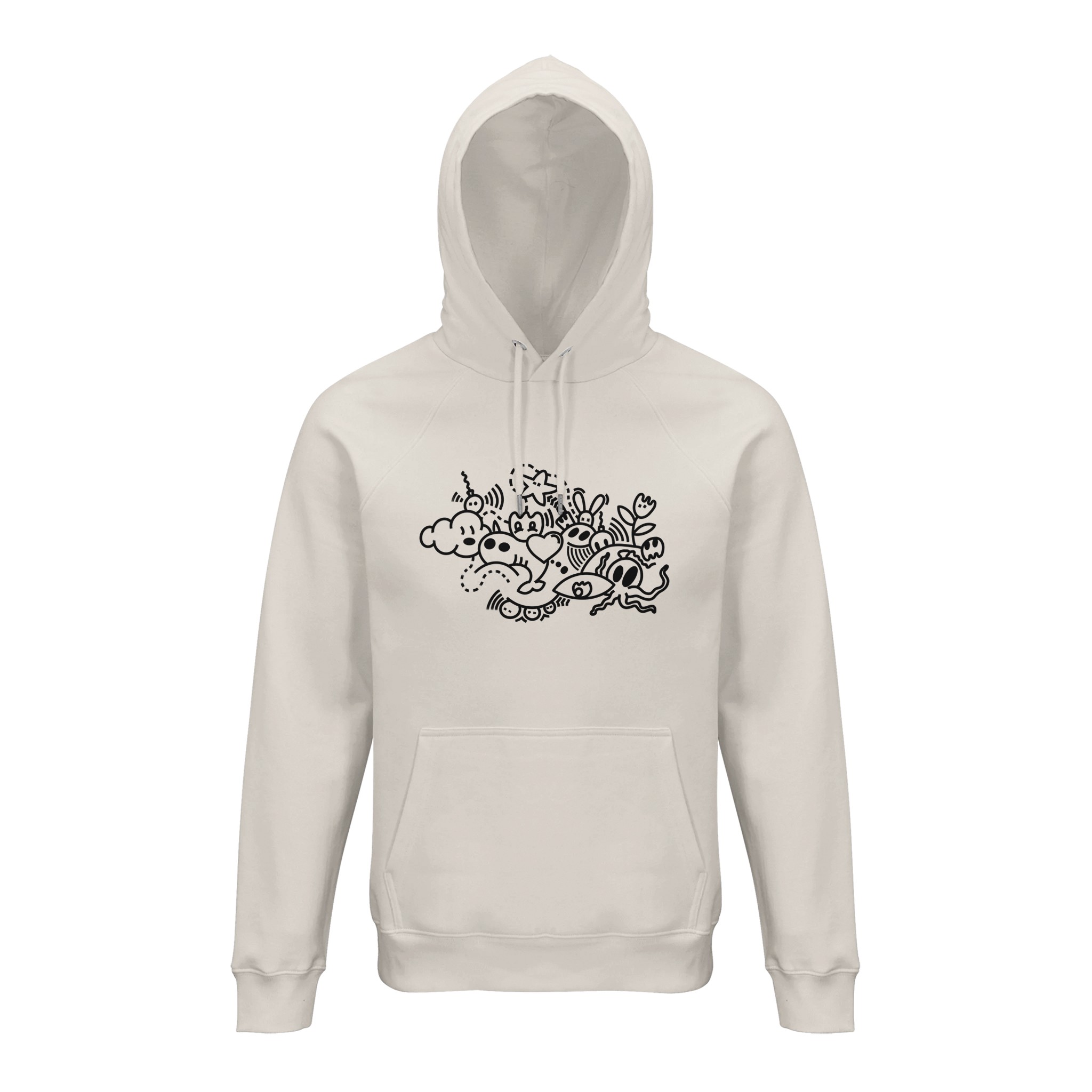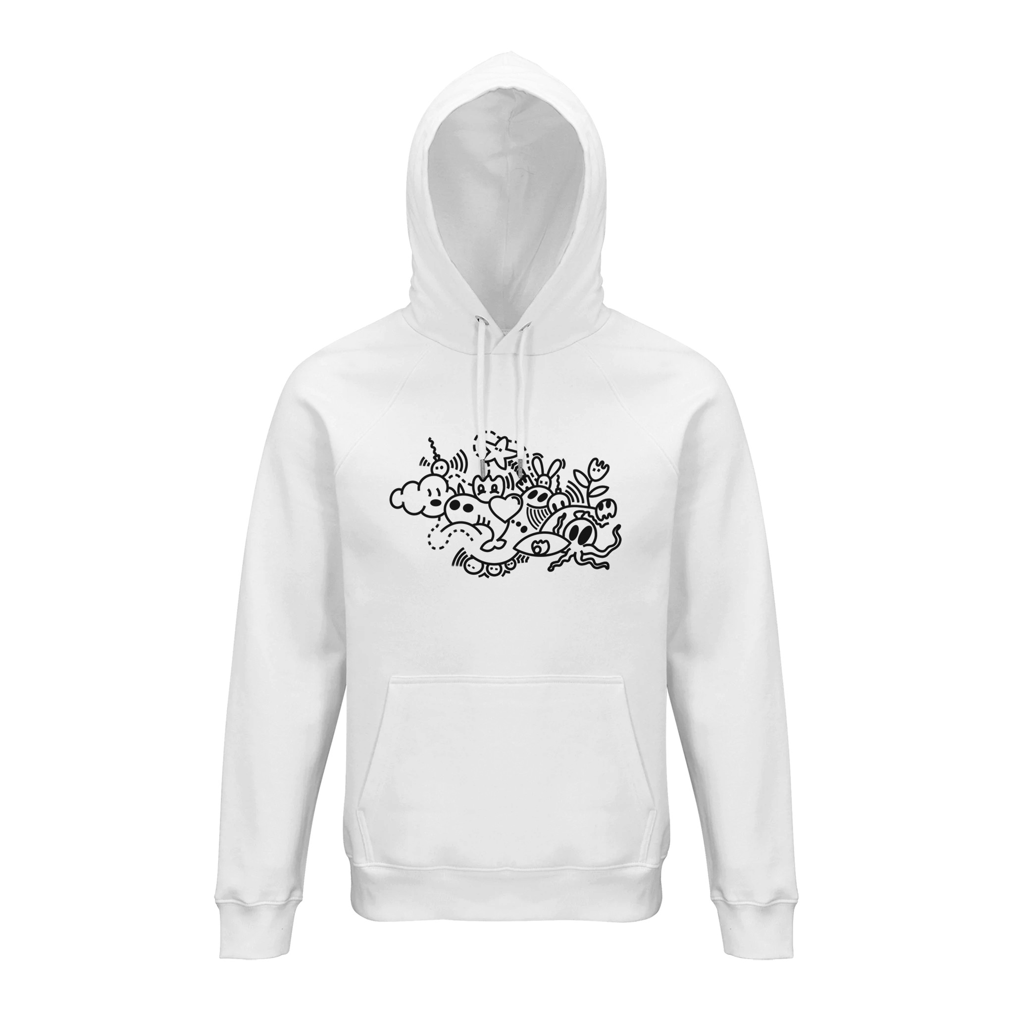 Un hoodie bio au visuel noir unique, confortable et créatif.