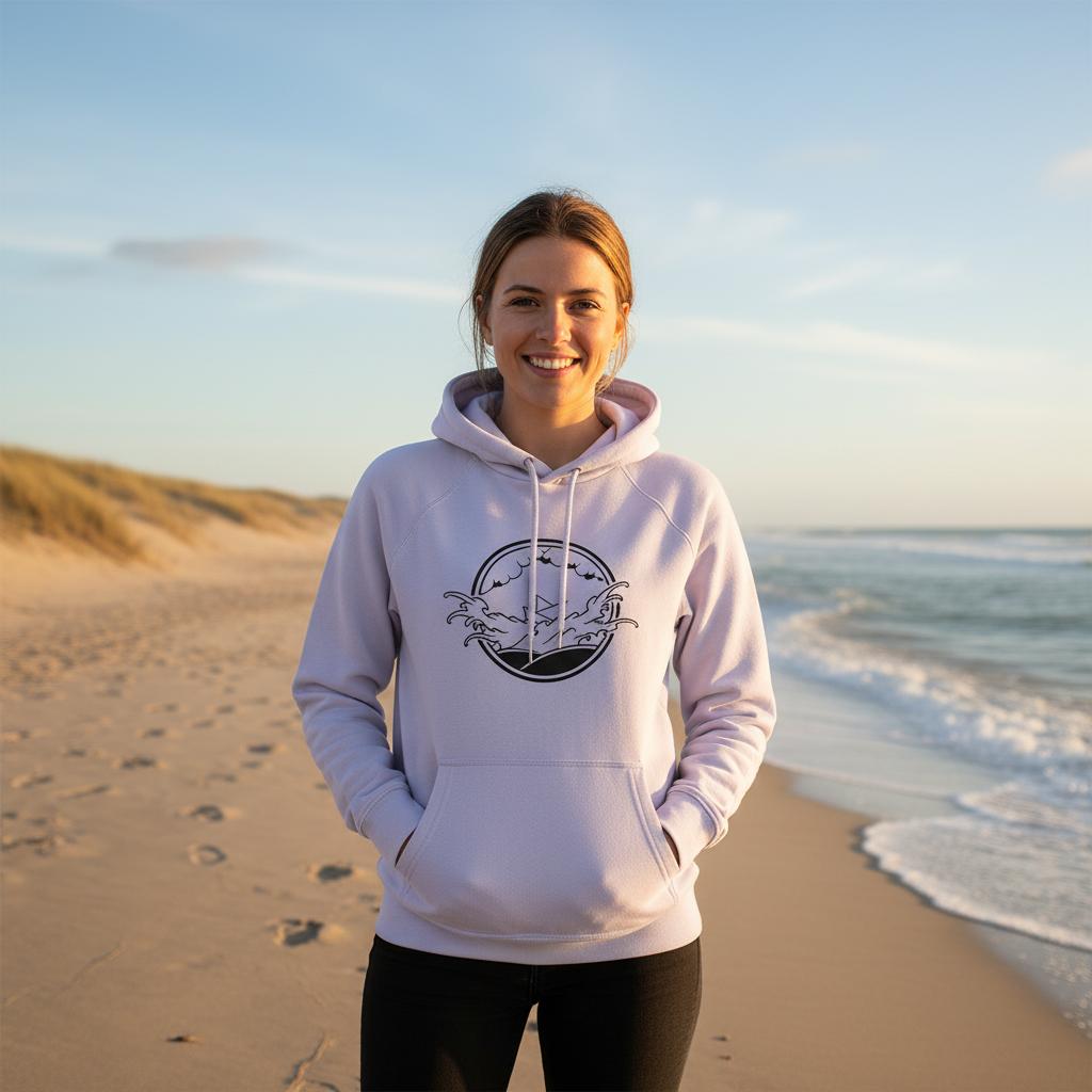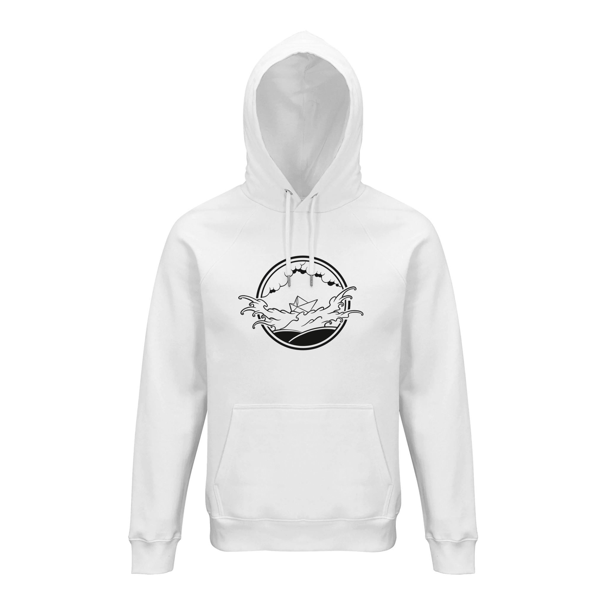 Avec son design unique, le hoodie bio visuel noir « Petit Bateau » raconte une histoire de résilience face aux flots. Confortable et intemporel, il allie chaleur, douceur et esthétique graphique. Une pièce artistique qui vous suit partout, de la ville aux escapades marines.