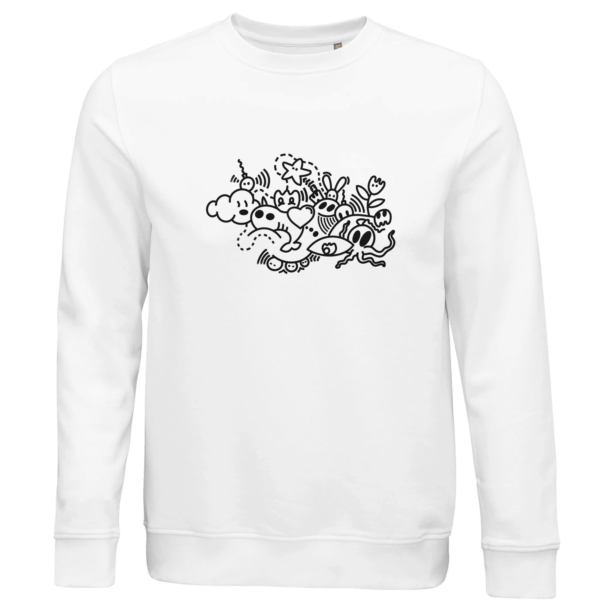 Un sweat bio au visuel noir poétique, confortable et intemporel.