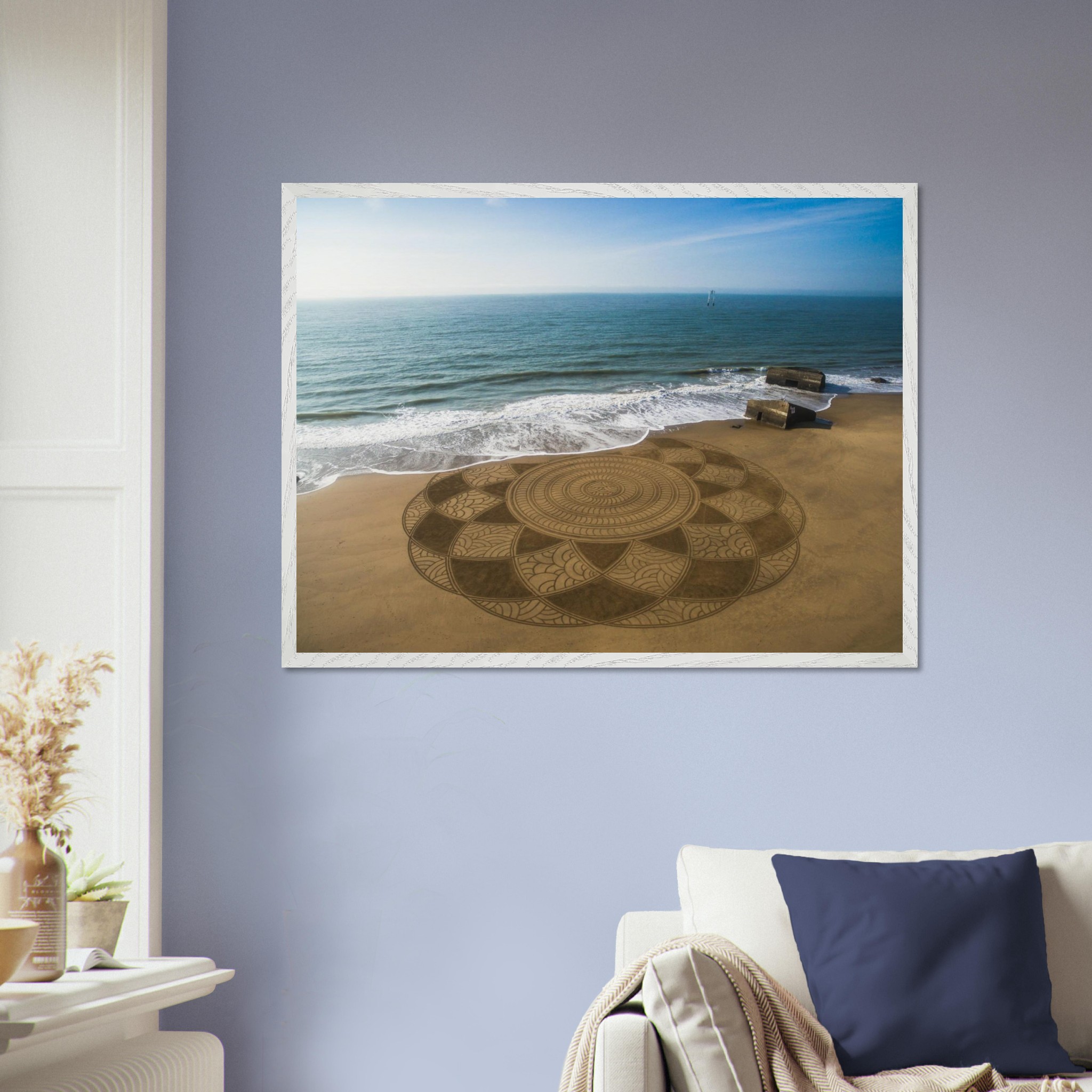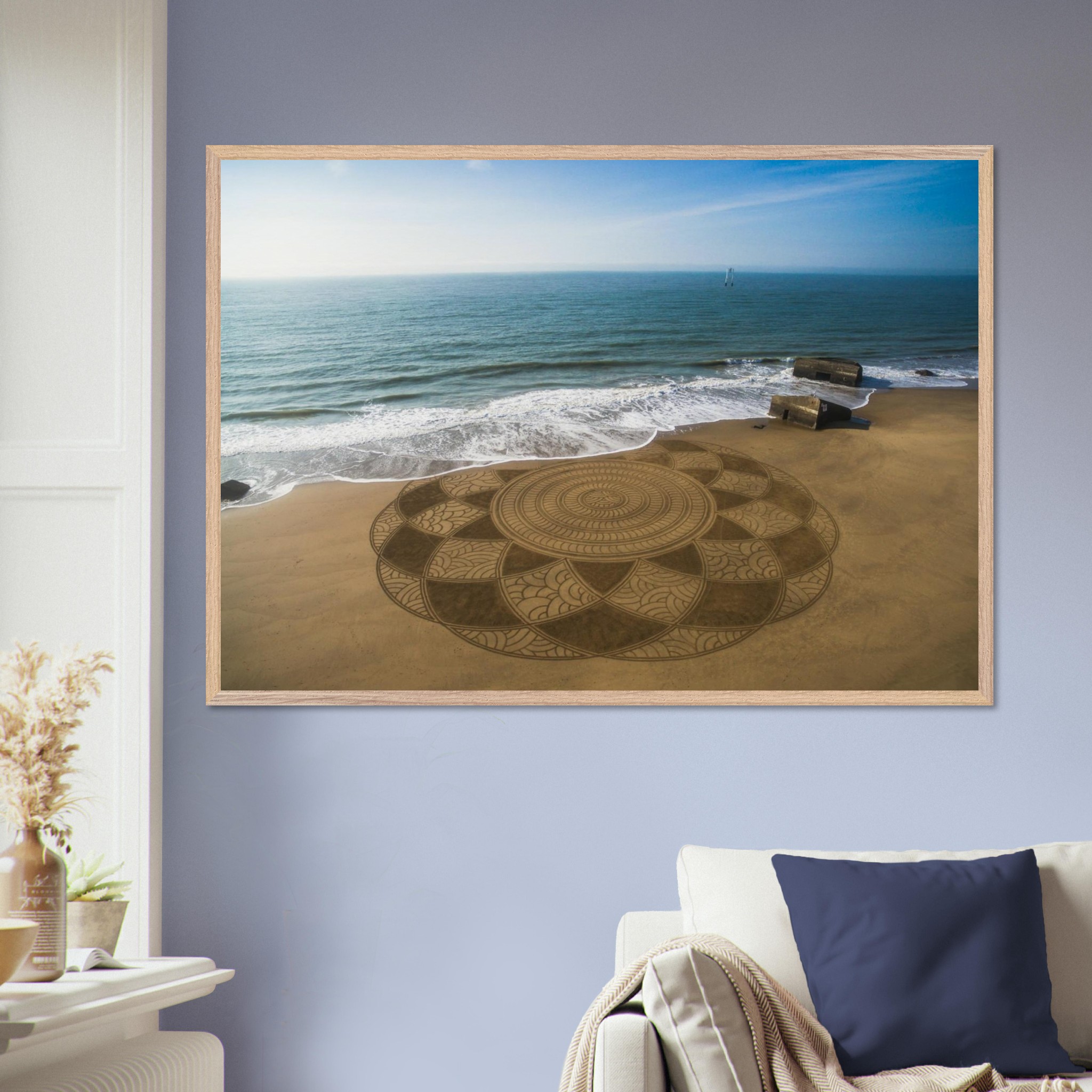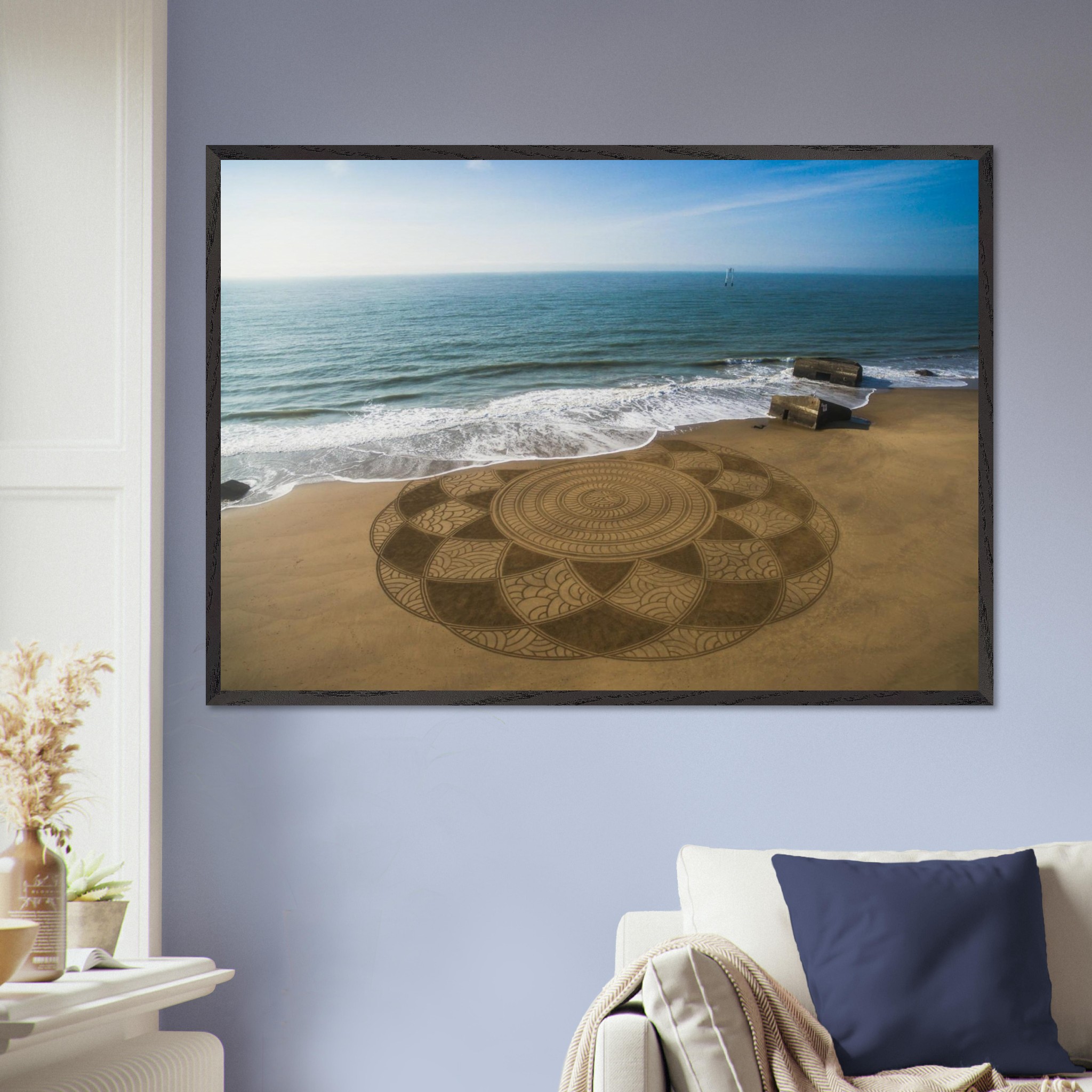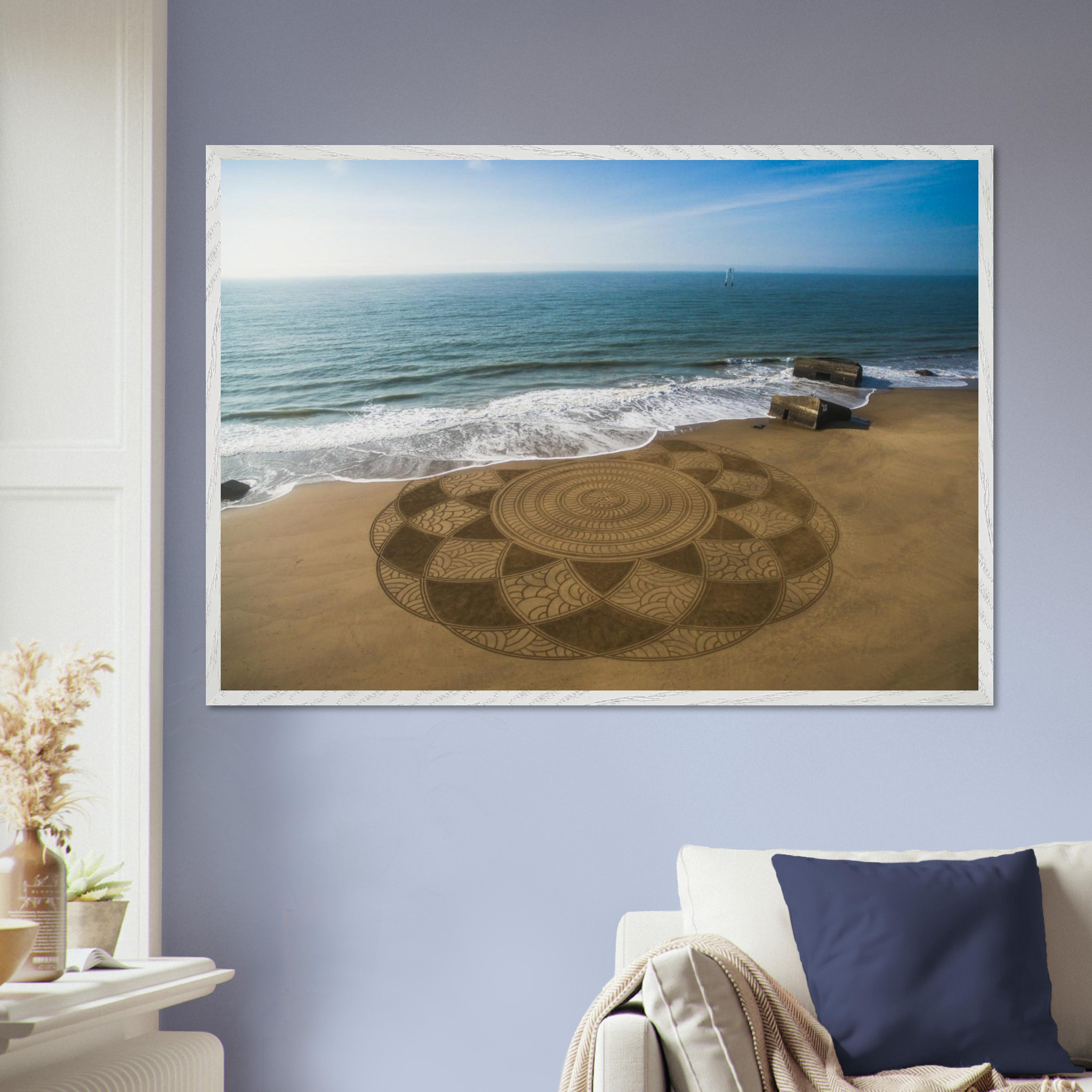 Symbole de plénitude et d’équilibre, ce mandala effet mer est préservé dans ce tirage encadré de qualité musée, transformant une création fragile en un objet d’art intemporel et puissant.