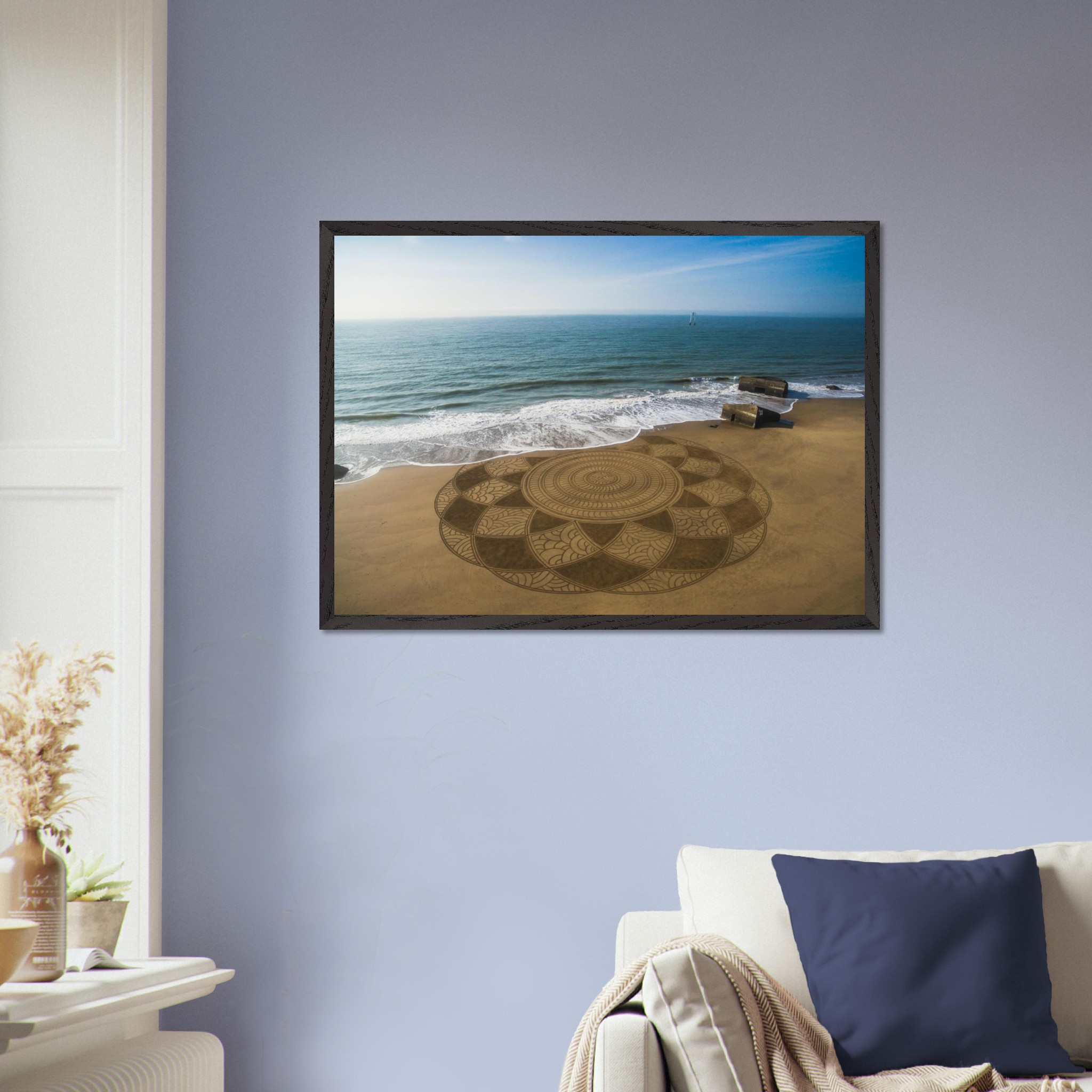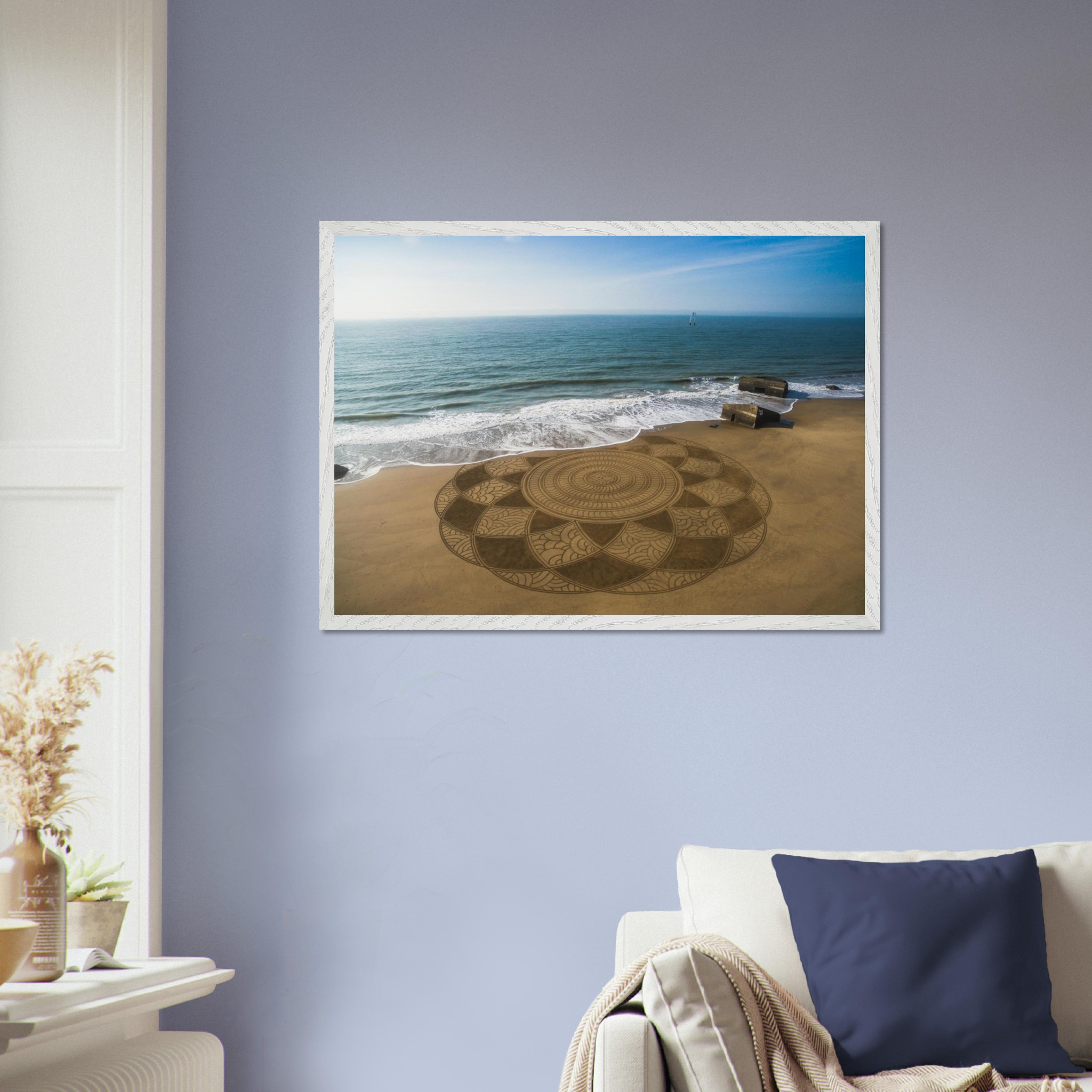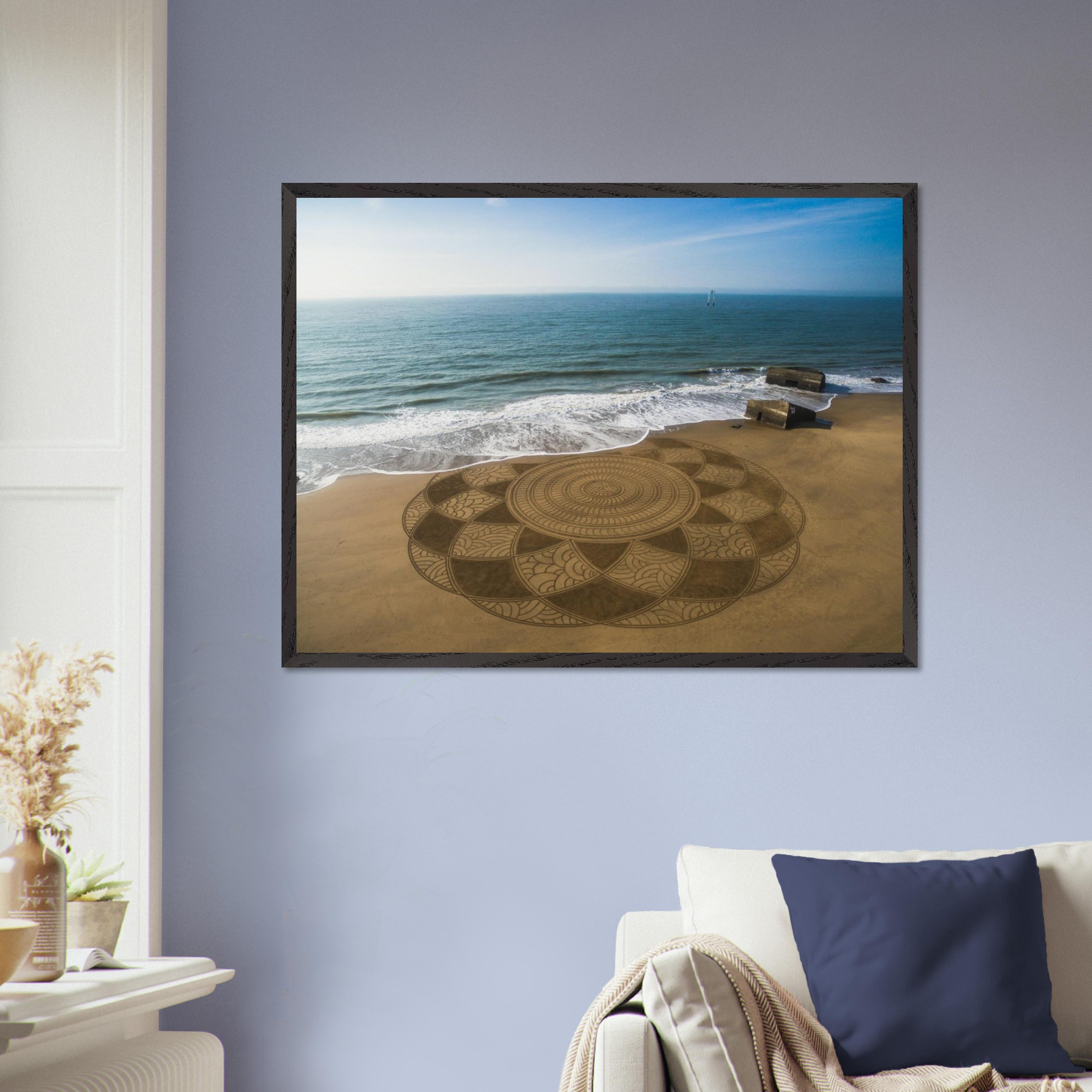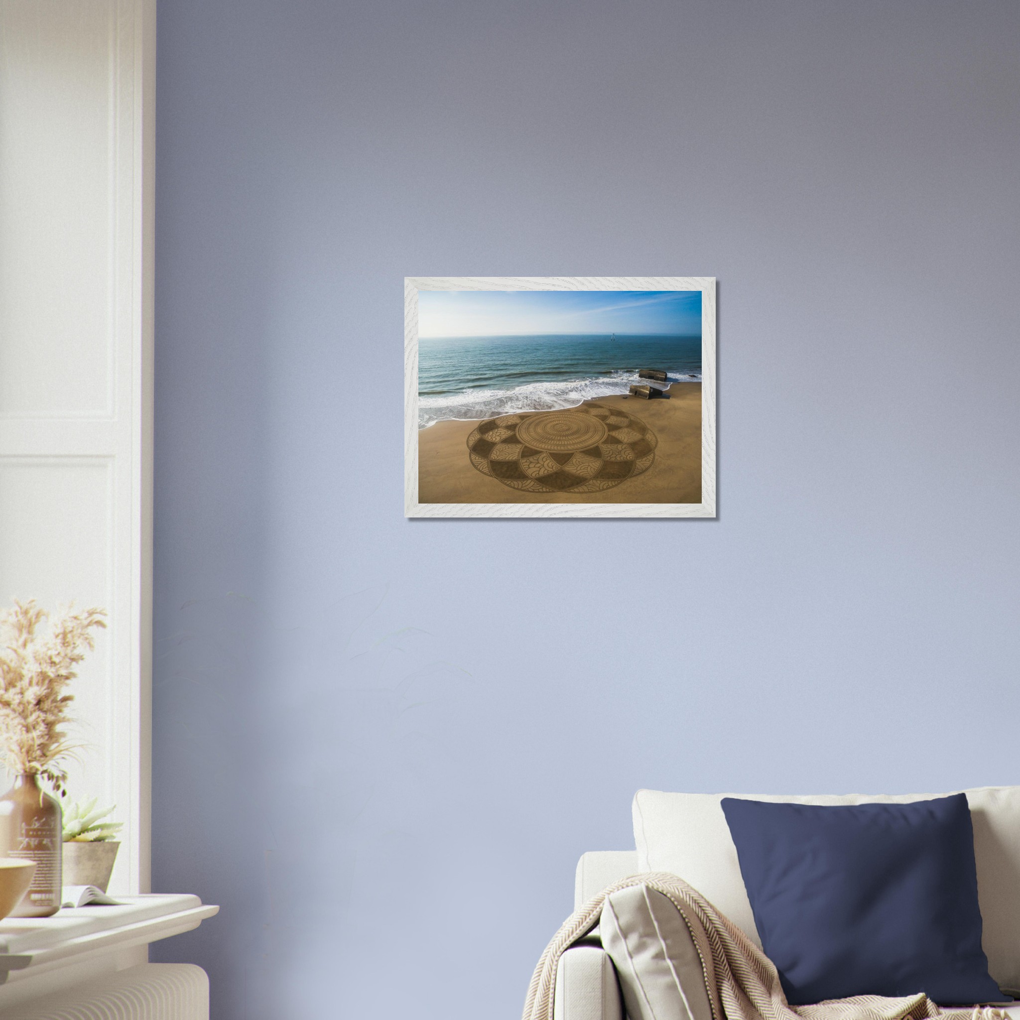 Symbole de plénitude et d’équilibre, ce mandala effet mer est préservé dans ce tirage encadré de qualité musée, transformant une création fragile en un objet d’art intemporel et puissant.