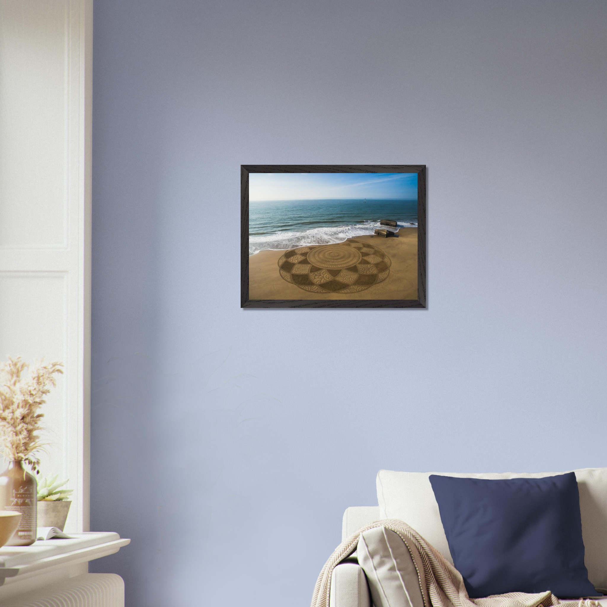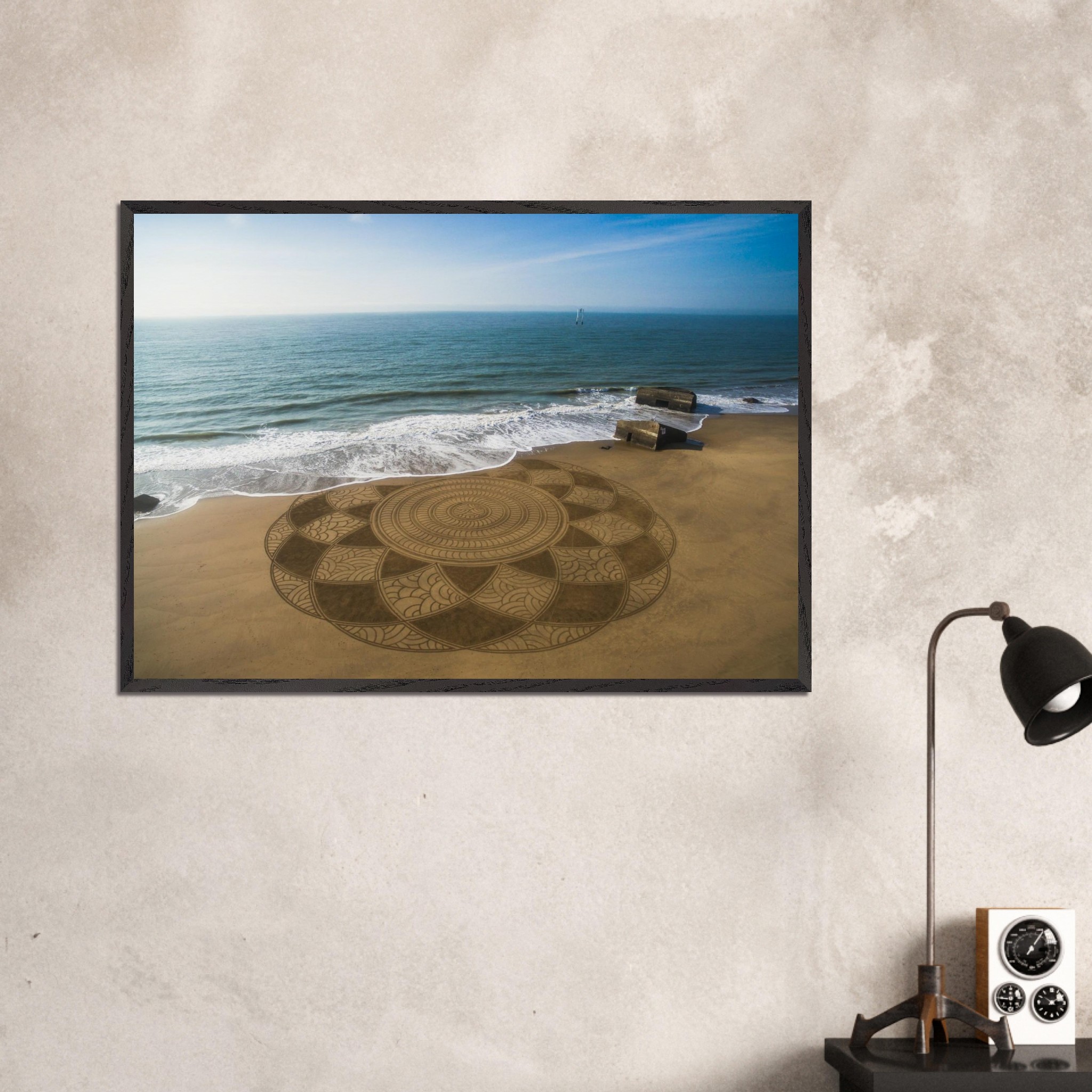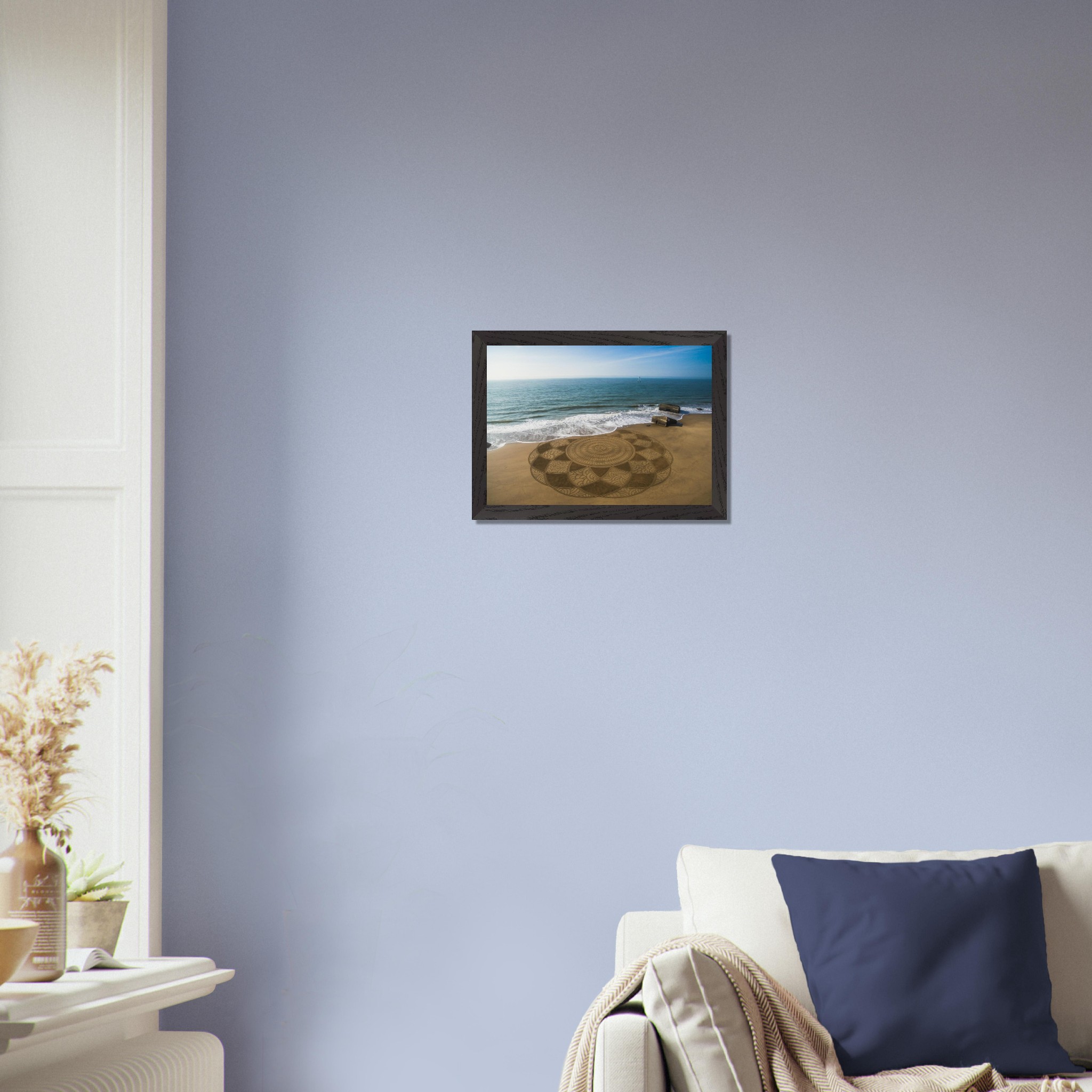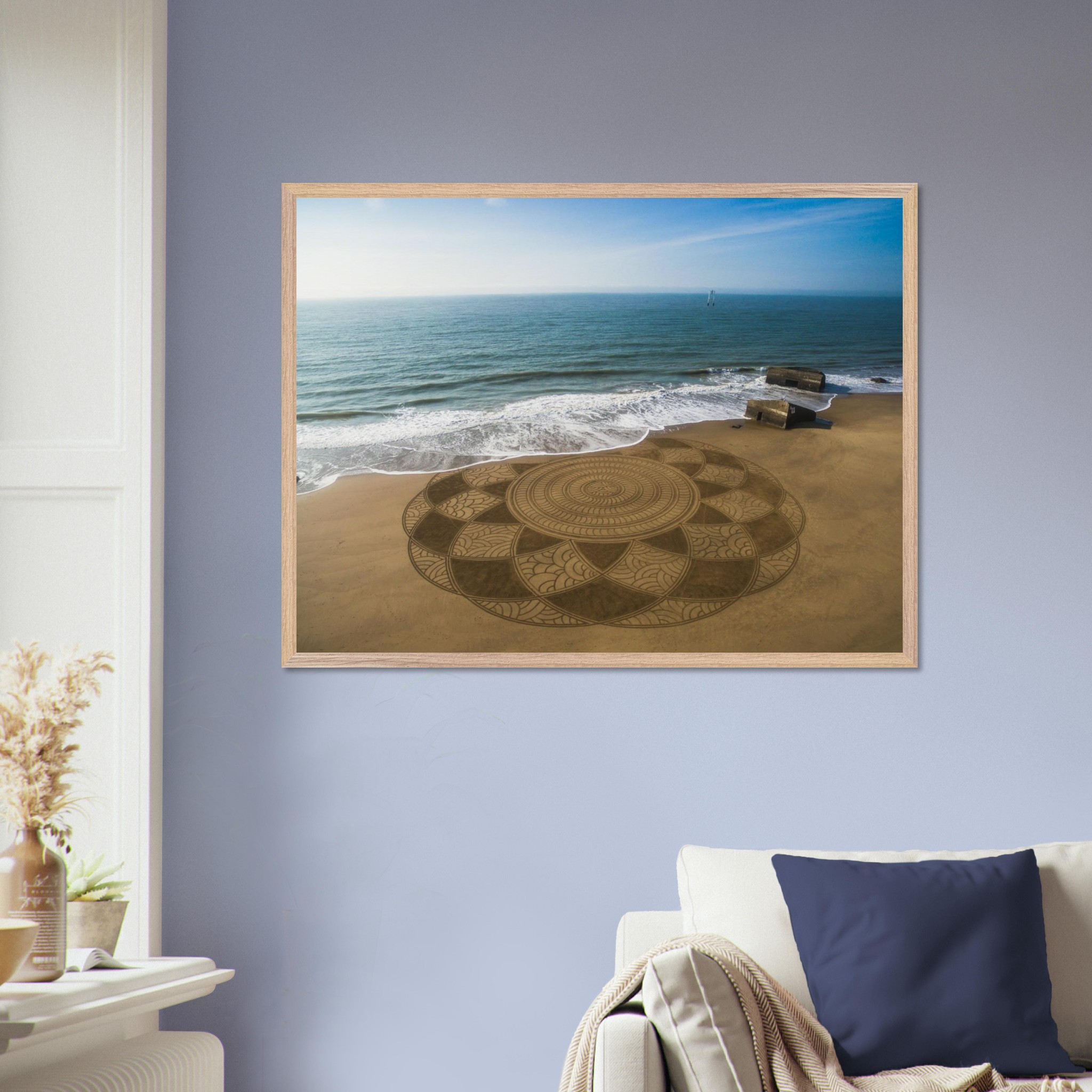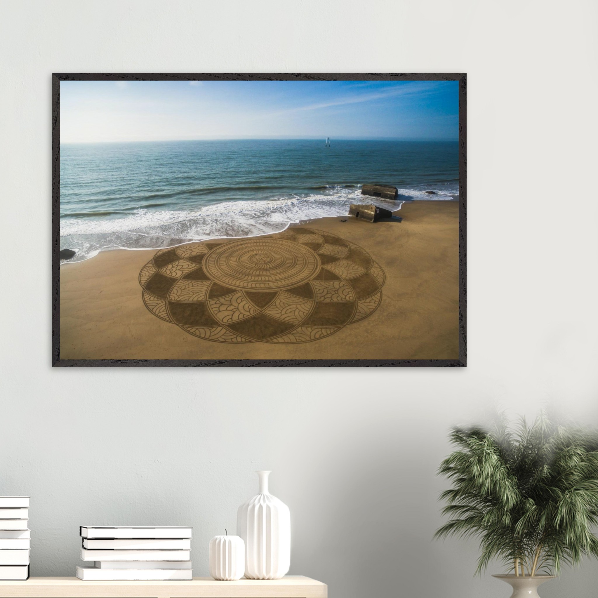 Symbole de plénitude et d’équilibre, ce mandala effet mer est préservé dans ce tirage encadré de qualité musée, transformant une création fragile en un objet d’art intemporel et puissant.