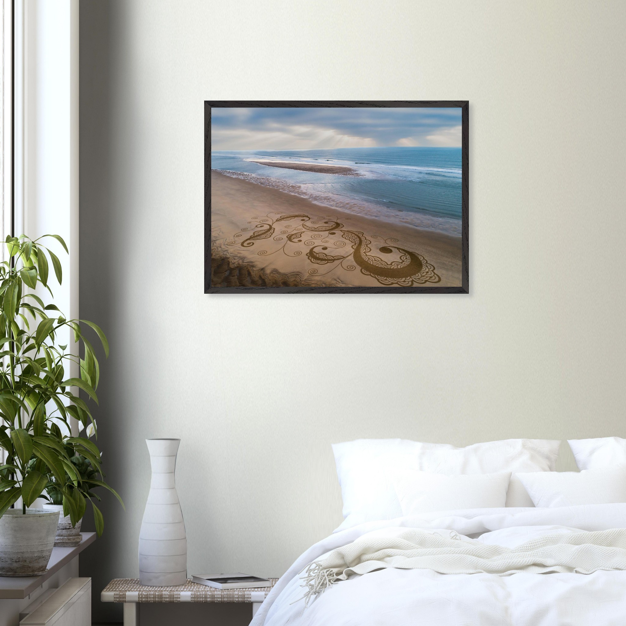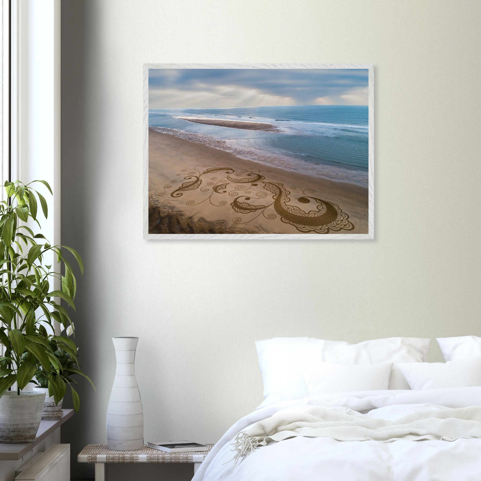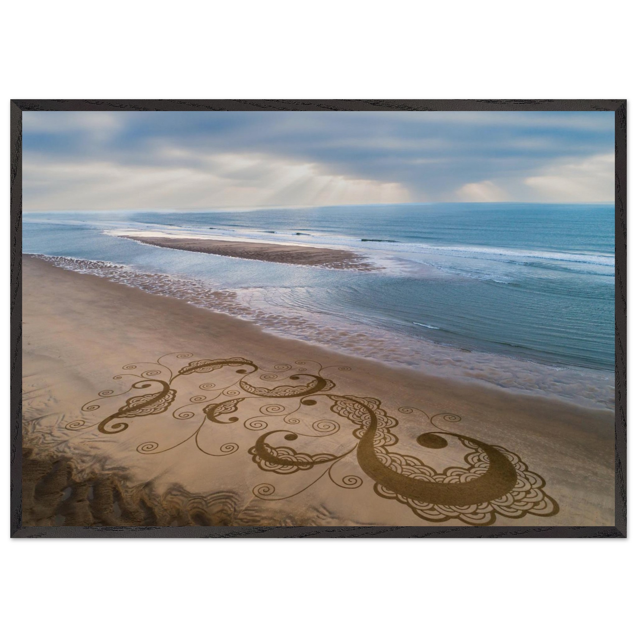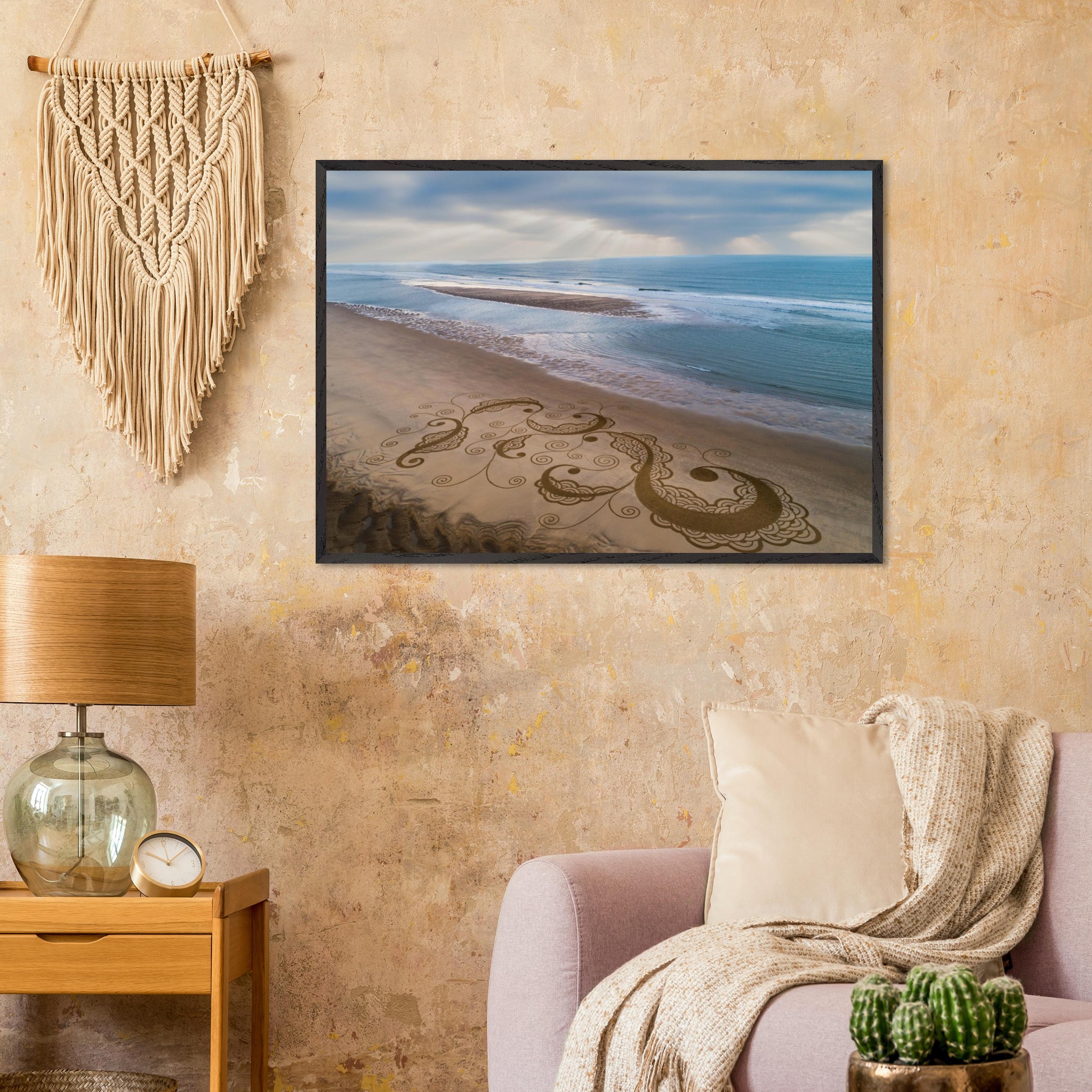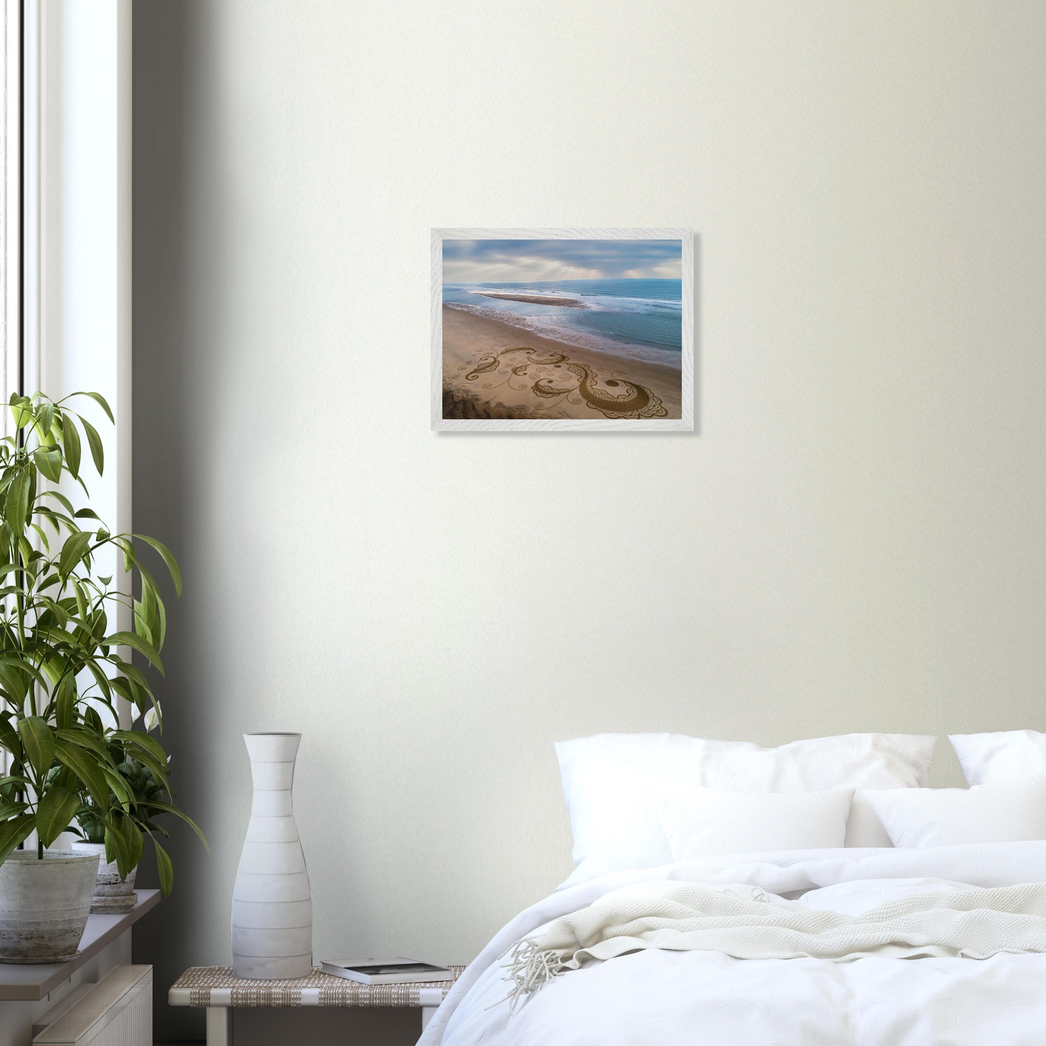 Un dessin sur le sable organique et hypnotique, sublimé dans un encadrement premium prêt à accrocher.
