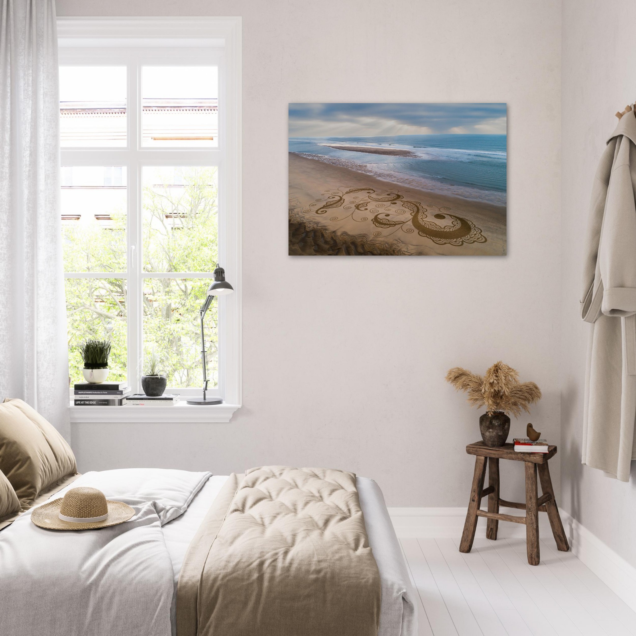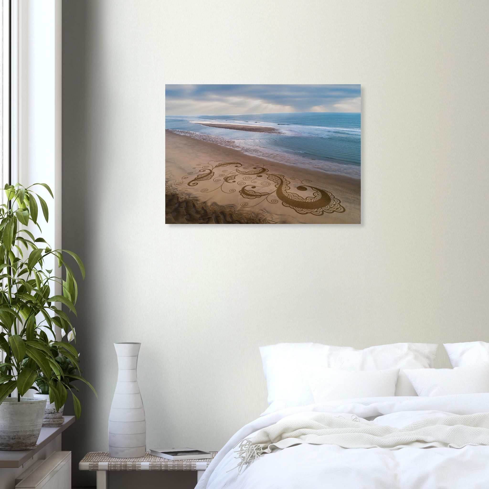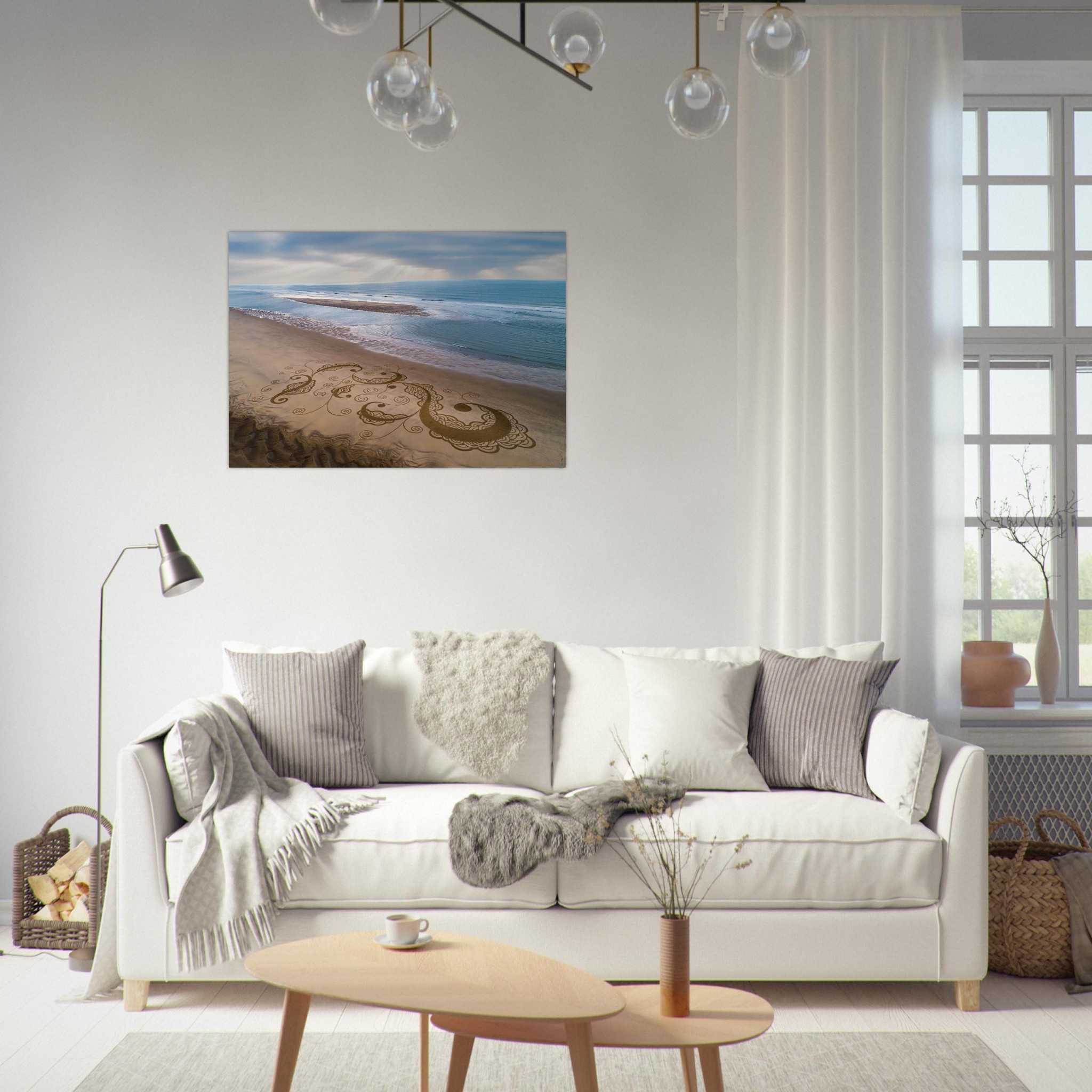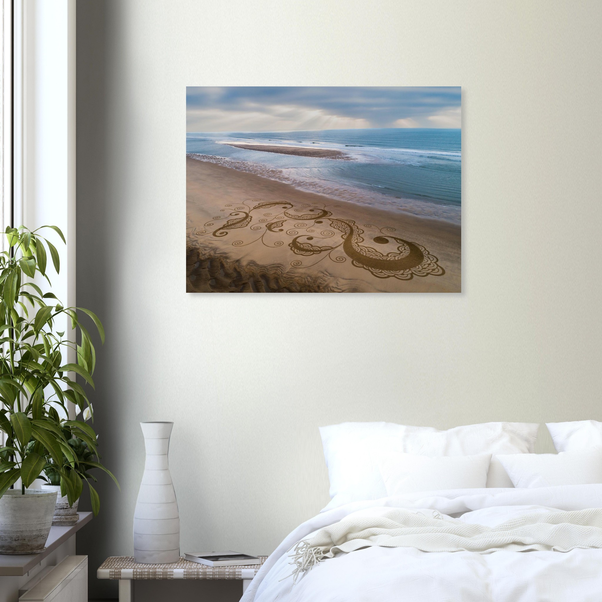 « Virgulus » est une danse visuelle sculptée dans le sable, faite de spirales délicates et de volutes végétales. Chaque courbe invite à suivre un mouvement fluide, comme une respiration reliant ciel, mer et terre.